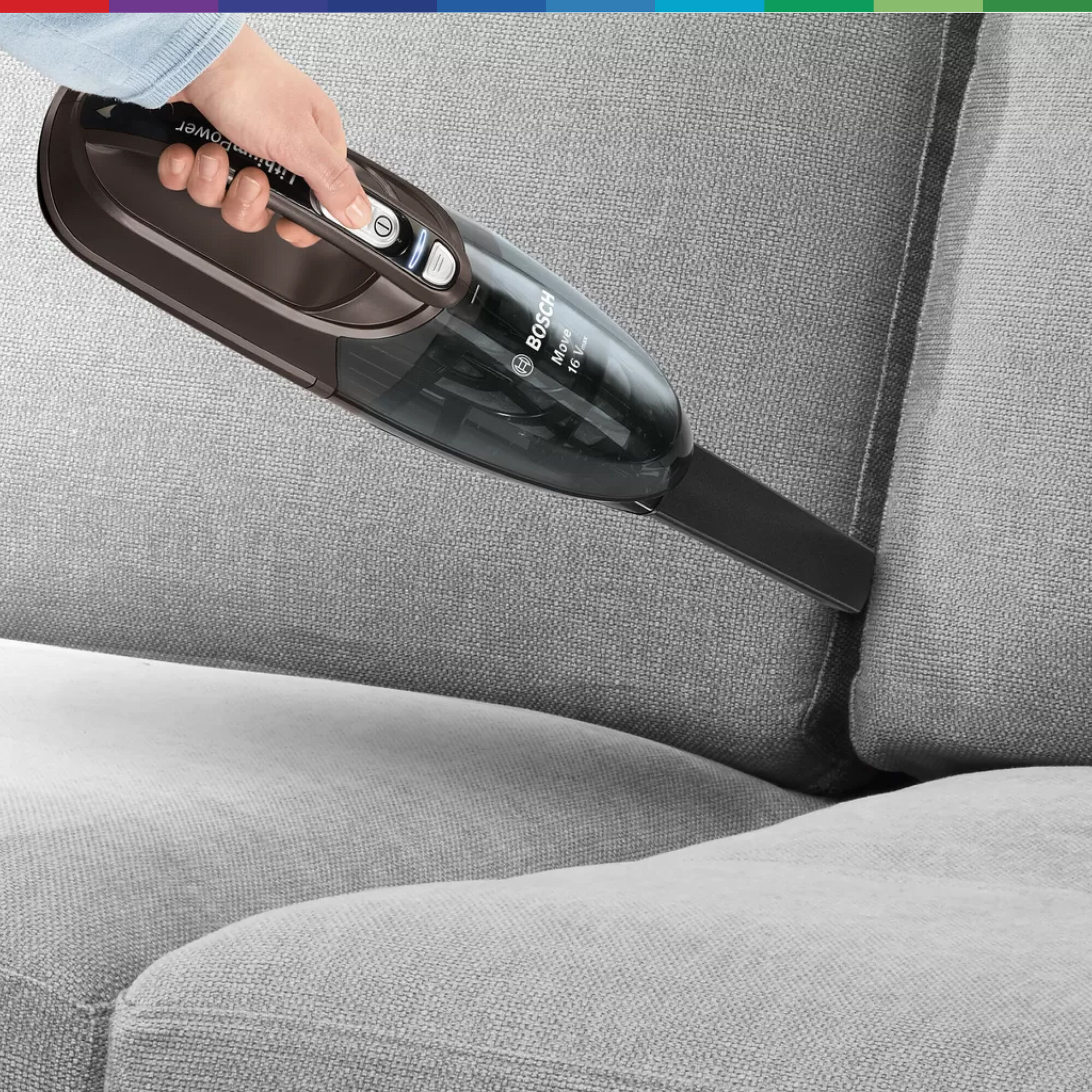 Пылесос ручной Bosch, питание - от аккумулятора, уборка - сухая, пылесборник - 0.3 л, работа от АКБ max - 40 мин