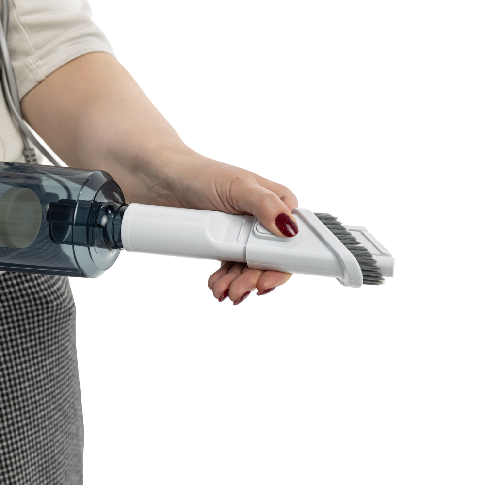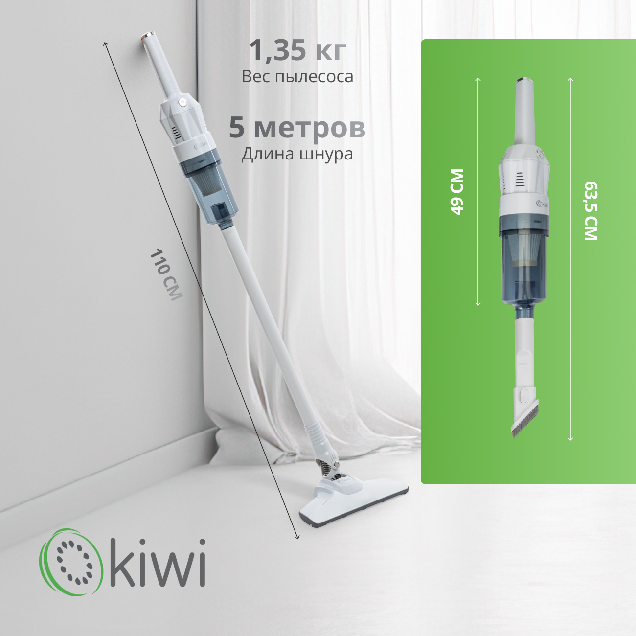 KIWI KVC-4108W - это стильный и мощный вертикальный пылесос в белом исполнении, который превосходно справляется с уборкой в доме благодаря мощности всасывания 15000 Па. Он оснащен HEPA фильтром, который эффективно улавливает мелкие частицы пыли и аллергены, обеспечивая чистоту воздуха в вашем доме. Легкость и маневренность пылесоса, вместе с удобной щелевой насадкой и вращающейся насадкой для пола, делают его идеальным выбором для быстрой и эффективной уборки. Длина шнура в 5 метров и компактная конструкция упрощают хранение и транспортировку устройства.