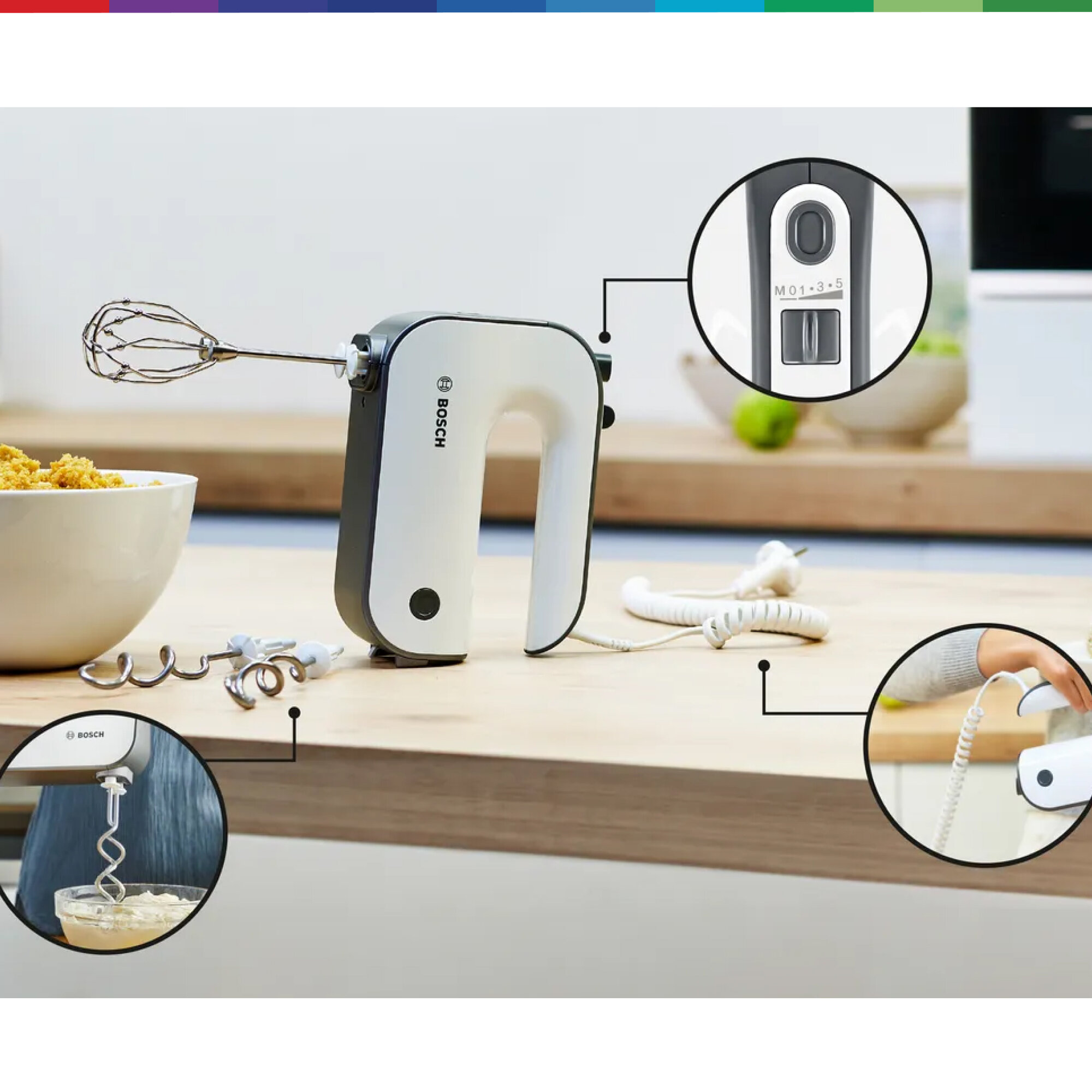 Самый мощный двигатель ручного миксера Bosch Благодаря мощному двигателю мощностью 850 Вт ручной миксер легко и быстро перемешивает и замешивает. А 5 скоростных режимов и кнопка турбо обеспечивают точный контроль темпа для каждого рецепта.