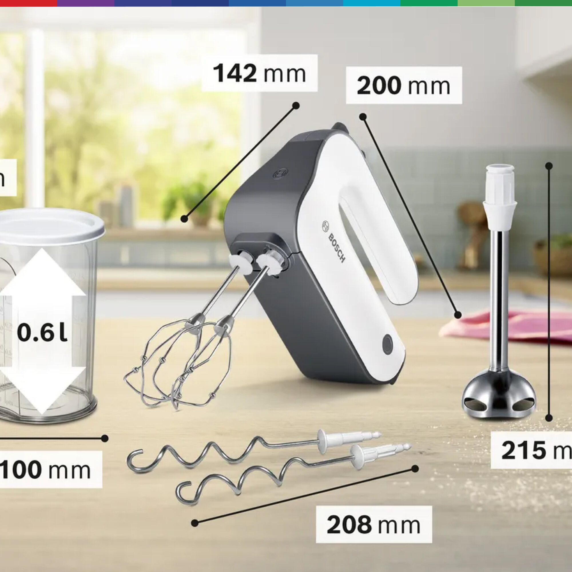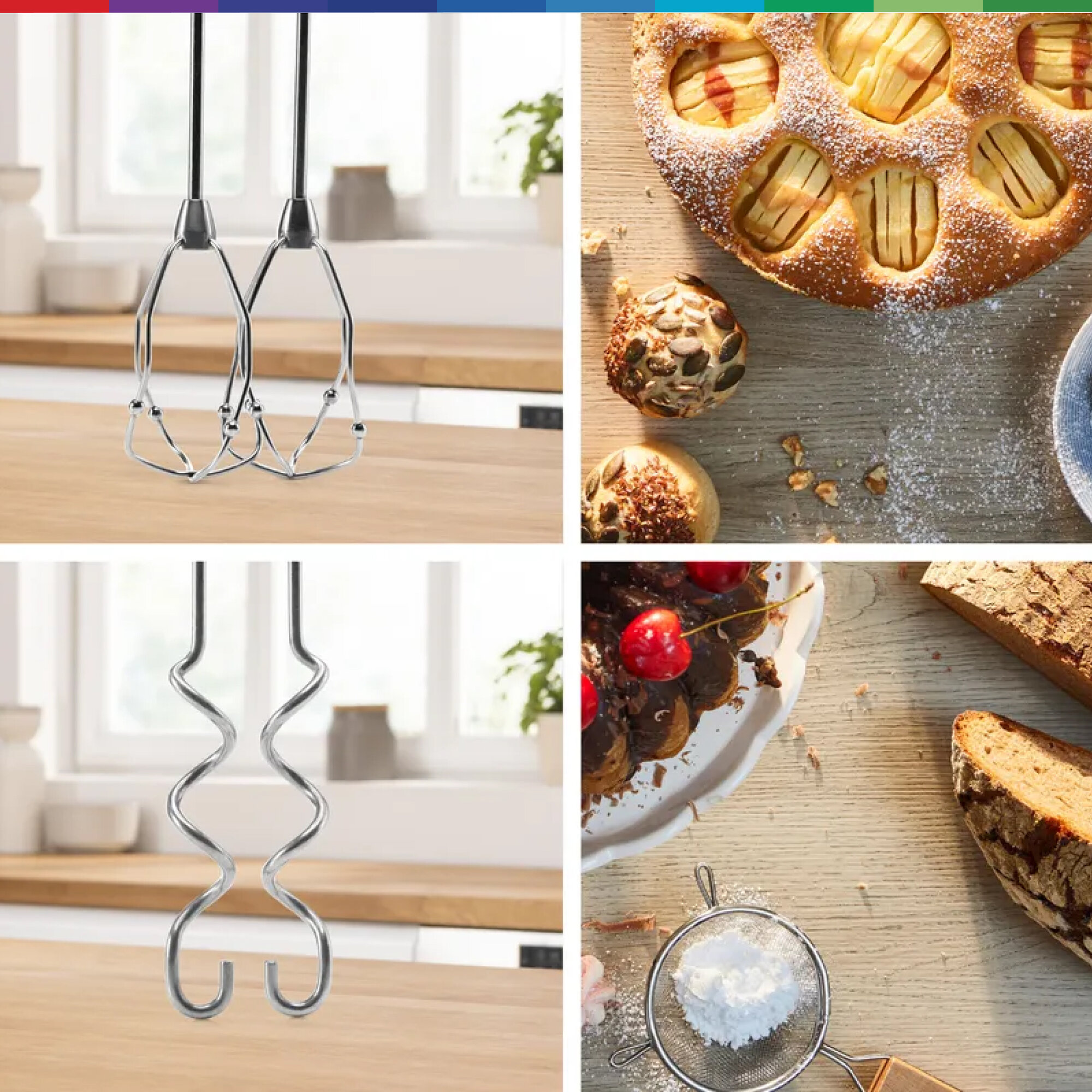Хорошо оснащен для любой идеи и рецепта выпечки. Независимо от того, выпекаете ли вы свежий хлеб самостоятельно, готовите вкусные кексы на детский день рождения, кремовые торты или торты для вечеринки, практичный ручной миксер мгновенно создает идеальные результаты. Он также взбивает сливки и мусс до нужной консистенции в кратчайшие сроки. А благодаря основанию для смешивания и чаше для смешивания из нержавеющей стали песто или супы можно легко пюрировать. Пробуйте новые рецепты снова и снова с вашим новым помощником на кухне.