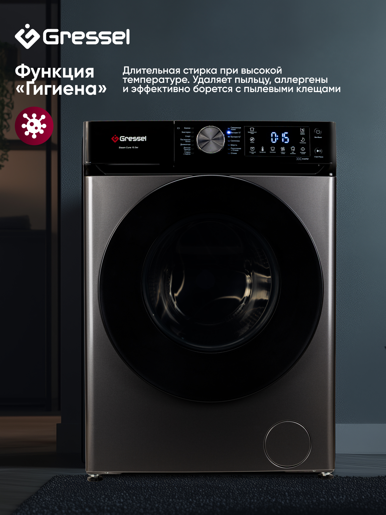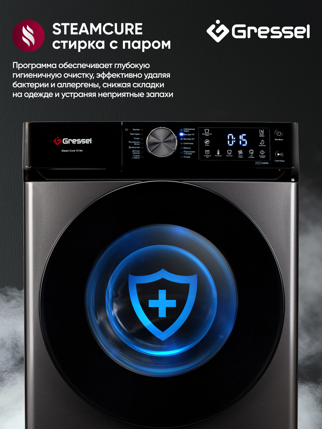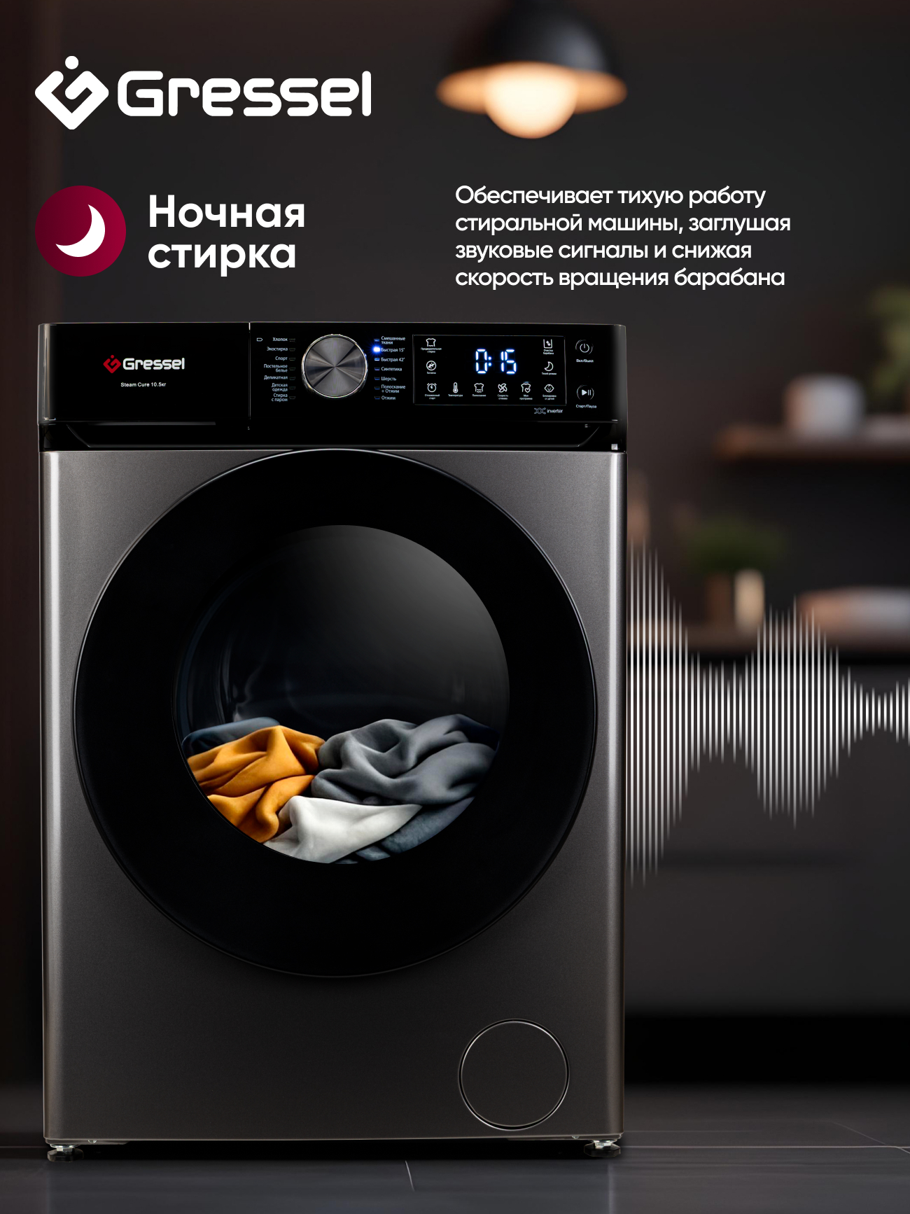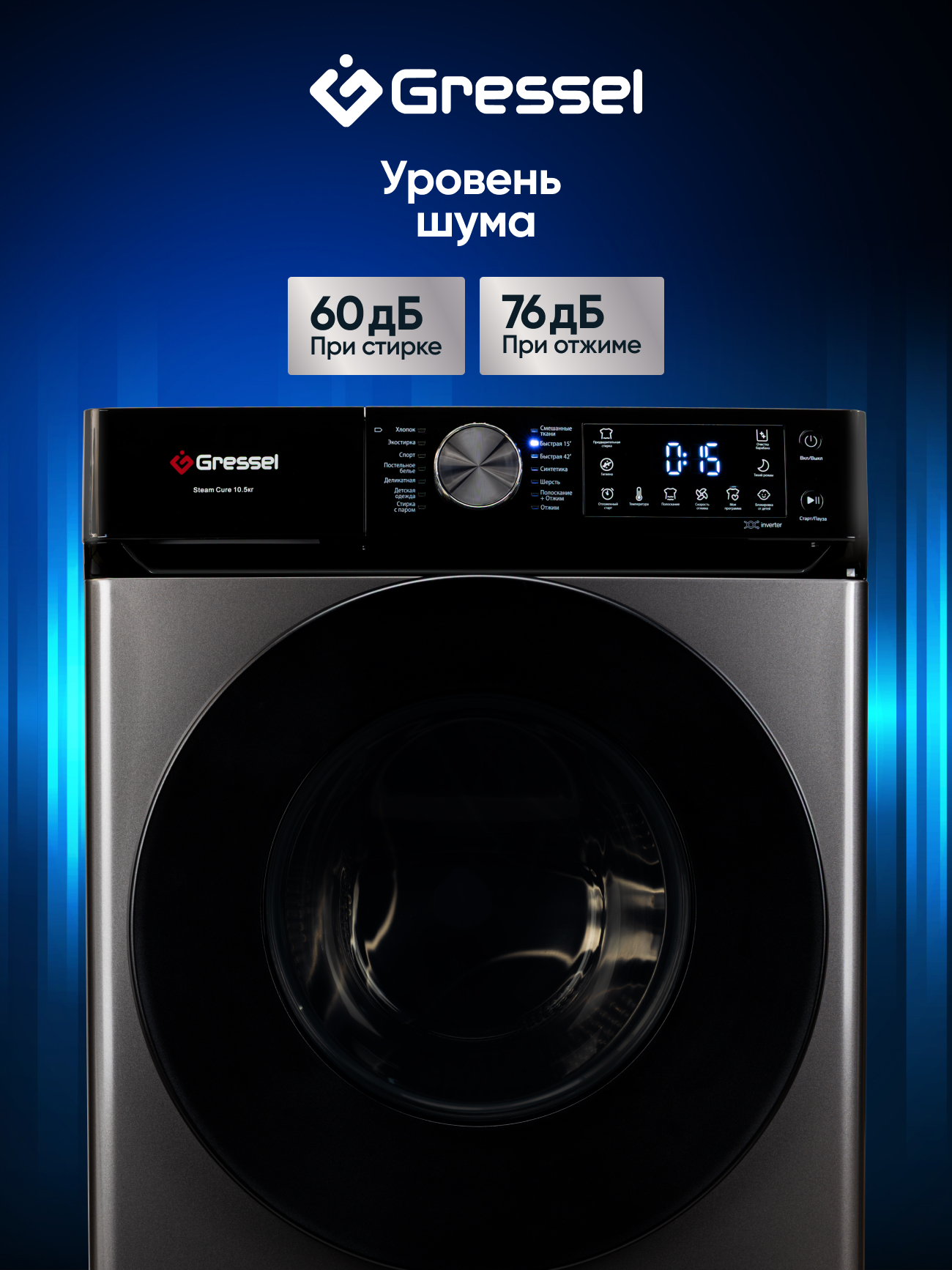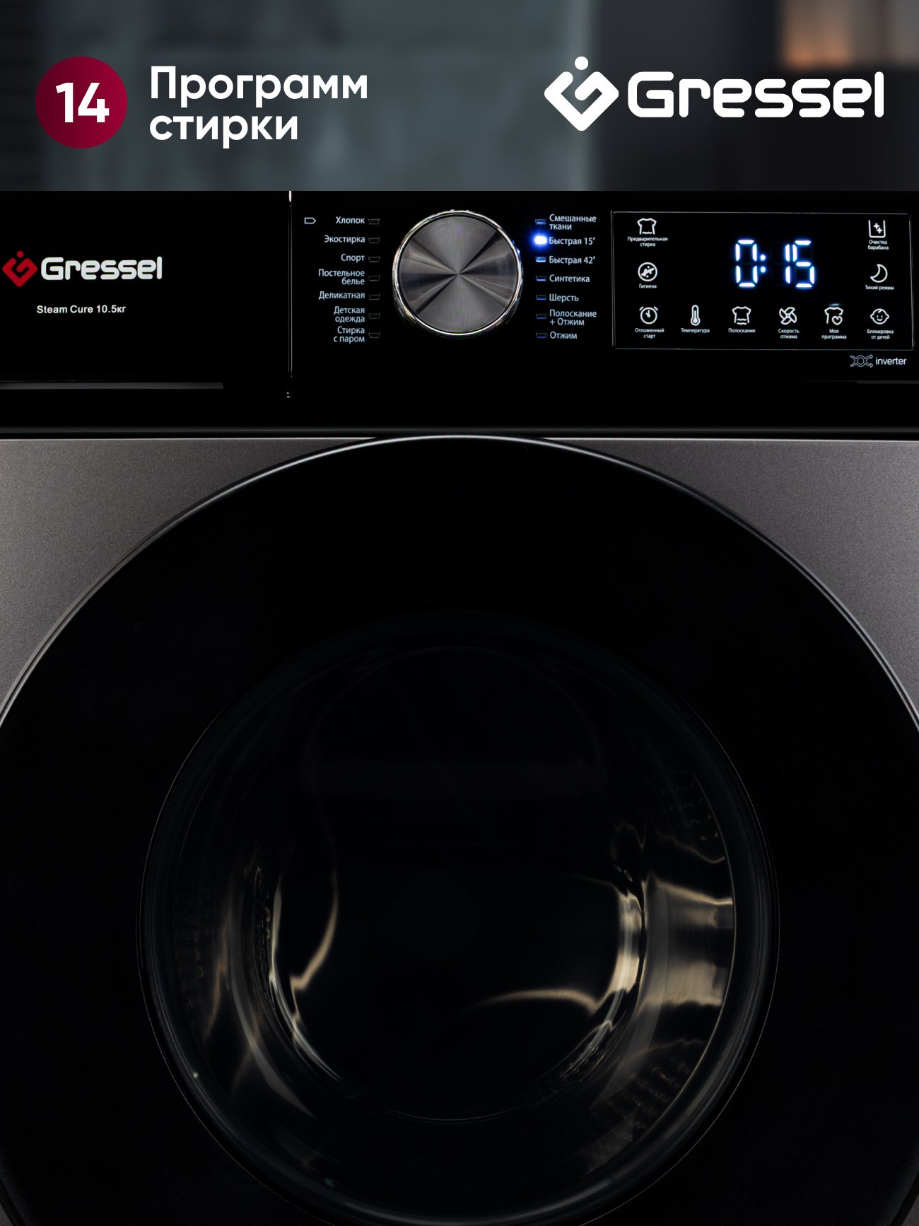 Стиральная машина 10,5кг Gressel UBC310, 14 программ, функция моя программа, класс энергопотребления А+++, отложенный старт, цвет серый