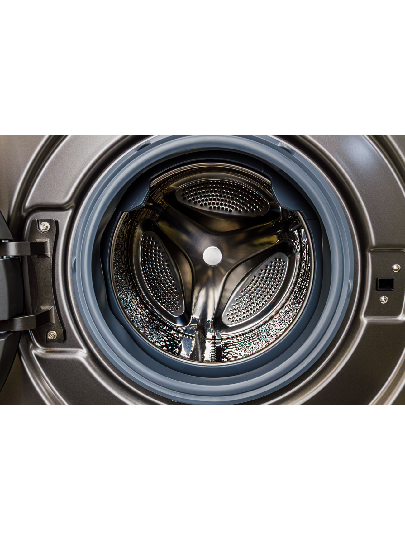 С серым корпусом и черной панелью управления модель выглядит современно и презентабельно. Мощный инверторный мотор BLDC обеспечивает тихую и производительную работу. Включает 14 эффективных программ стирки, подходящих для разных типов тканей и уровней загрязнения.