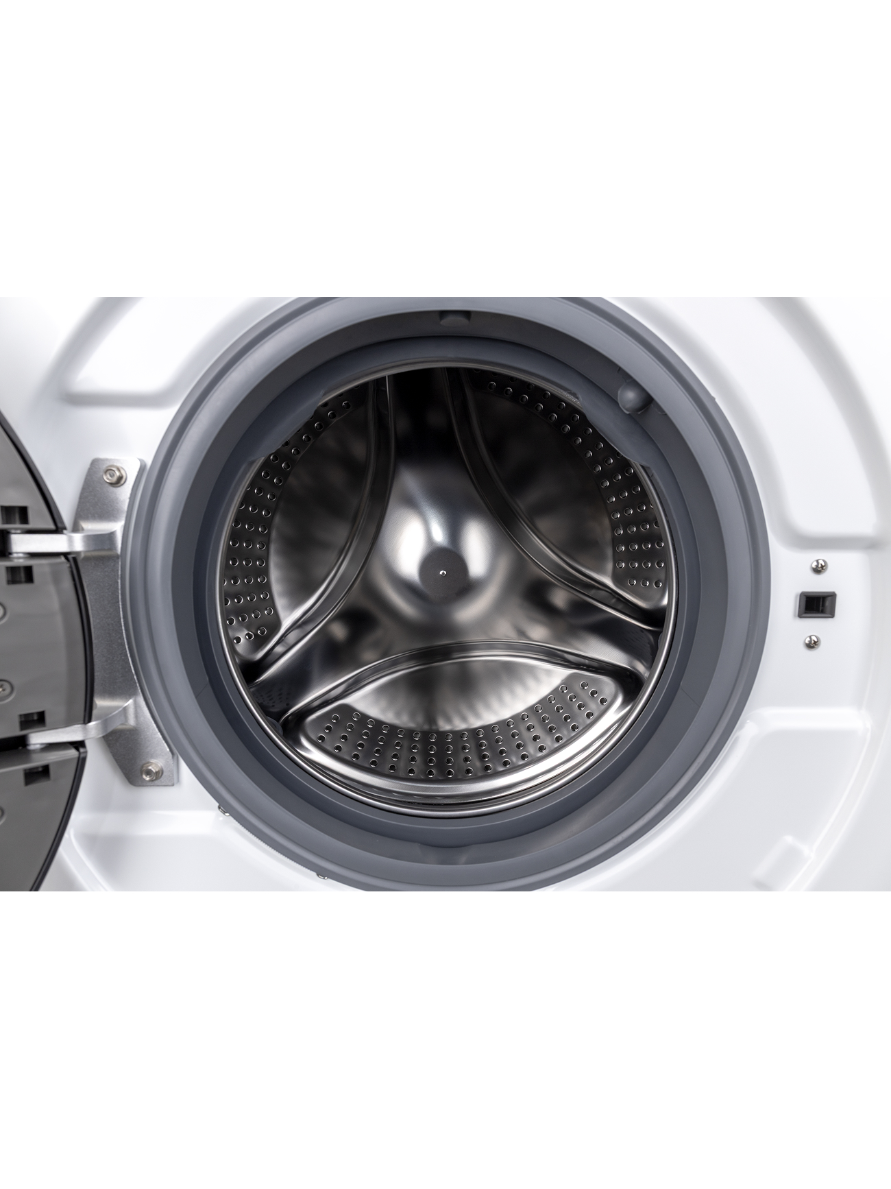 Белый корпус с черной панелью управления удачно впишется в любой интерьер. Инверторный мотор BLDC обеспечивает тихую и экономичную работу. Модели доступна загрузка до 7 кг, что позволяет обрабатывать значительные объемы белья за одну стирку.