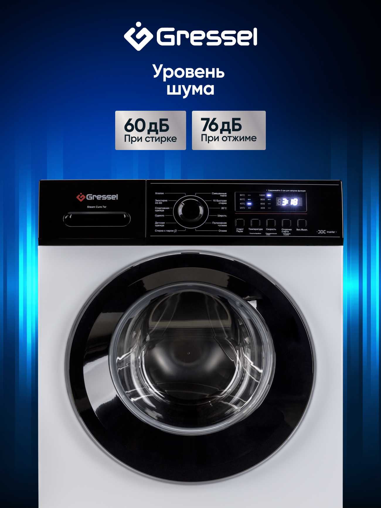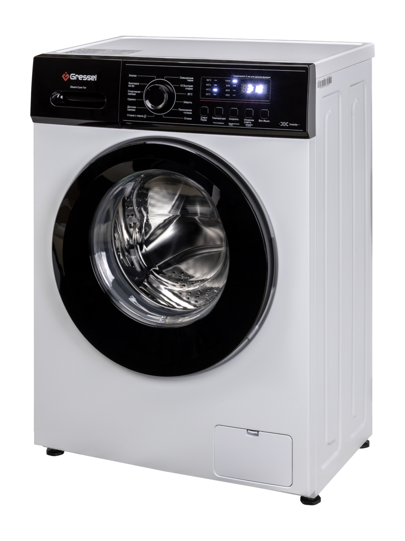 Стиральная машина 7кг Gressel UWC301, узкая, класс энергопотребления А+++, 12 программ, инверторный мотор, цвет белый