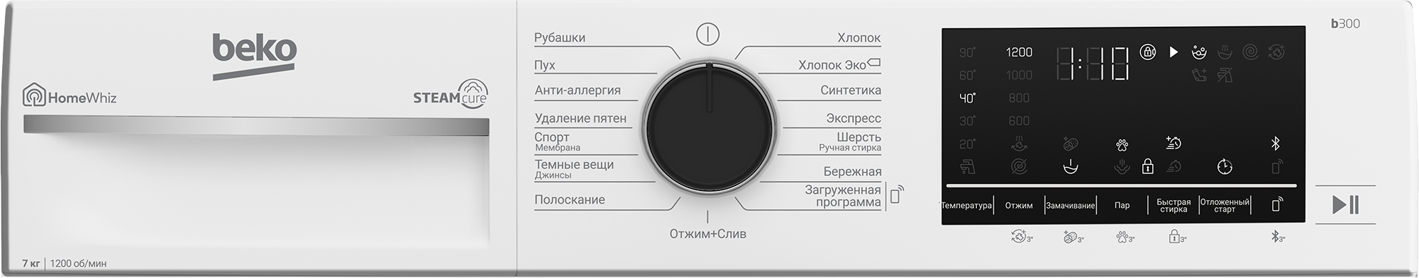 Стиральная машина с технологией обработки паром SteamCure, максимальная загрузка 7 кг, скорость отжима 1200 об/мин. 15 программ: Мини 14', Рубашки, Удаление пятен, Анти-аллергия, Загруженная программа). Цифровой дисплей. Удаленное управление HomeWhiz. Отложенный старт на 0-24 ч. Индикация хода выполнения программы. Плавная регулировка скорости отжима. Защита от детей. Дополнительные функции: Замачивание, Быстрая стирка, Удаление шерсти животных. Очистка барабана. Материал барабана: нержавеющая сталь, Объем барабана: 49л. Легко открывающийся люк, Автоматический контроль уровня воды. Класс: А. Размеры (ВхШхГ), см: 84,5x60x49,6. Вес: 62 кг, Цвет: белый + итальянское стекло, увеличенный диаметр люка: 34см