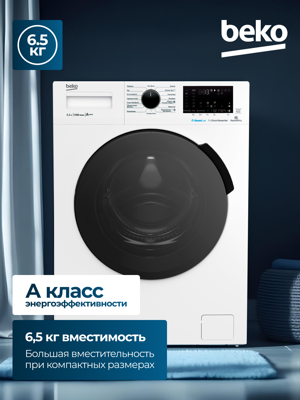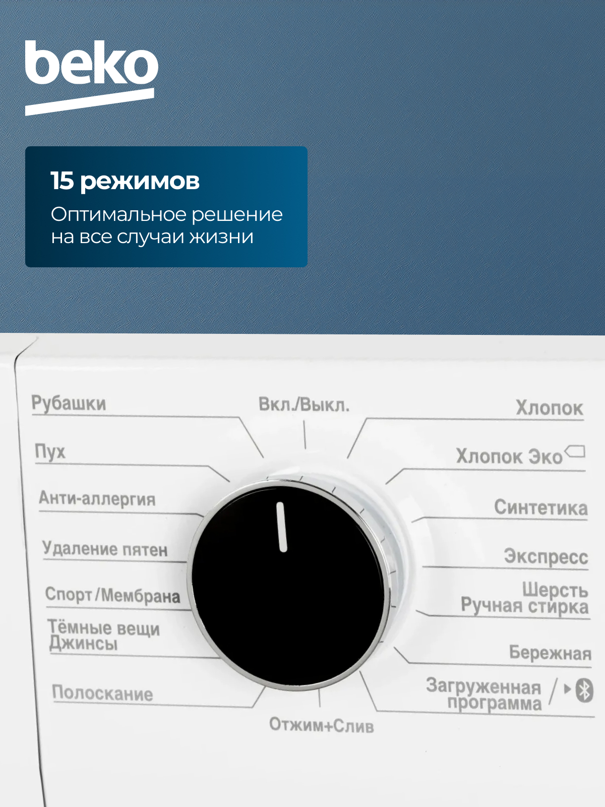 Хлопок, Хлопок Эко, Синтетика, Экспресс 14', Шерсть/Ручная стирка, Бережная, Загруженная программа, Анти-аллергия, Рубашки, Пух, Удаление пятен, Спорт/Мембрана, Темные вещи/Джинсы, Полоскание, Отжим + Слив, Замачивание, Дополнительное полоскание
