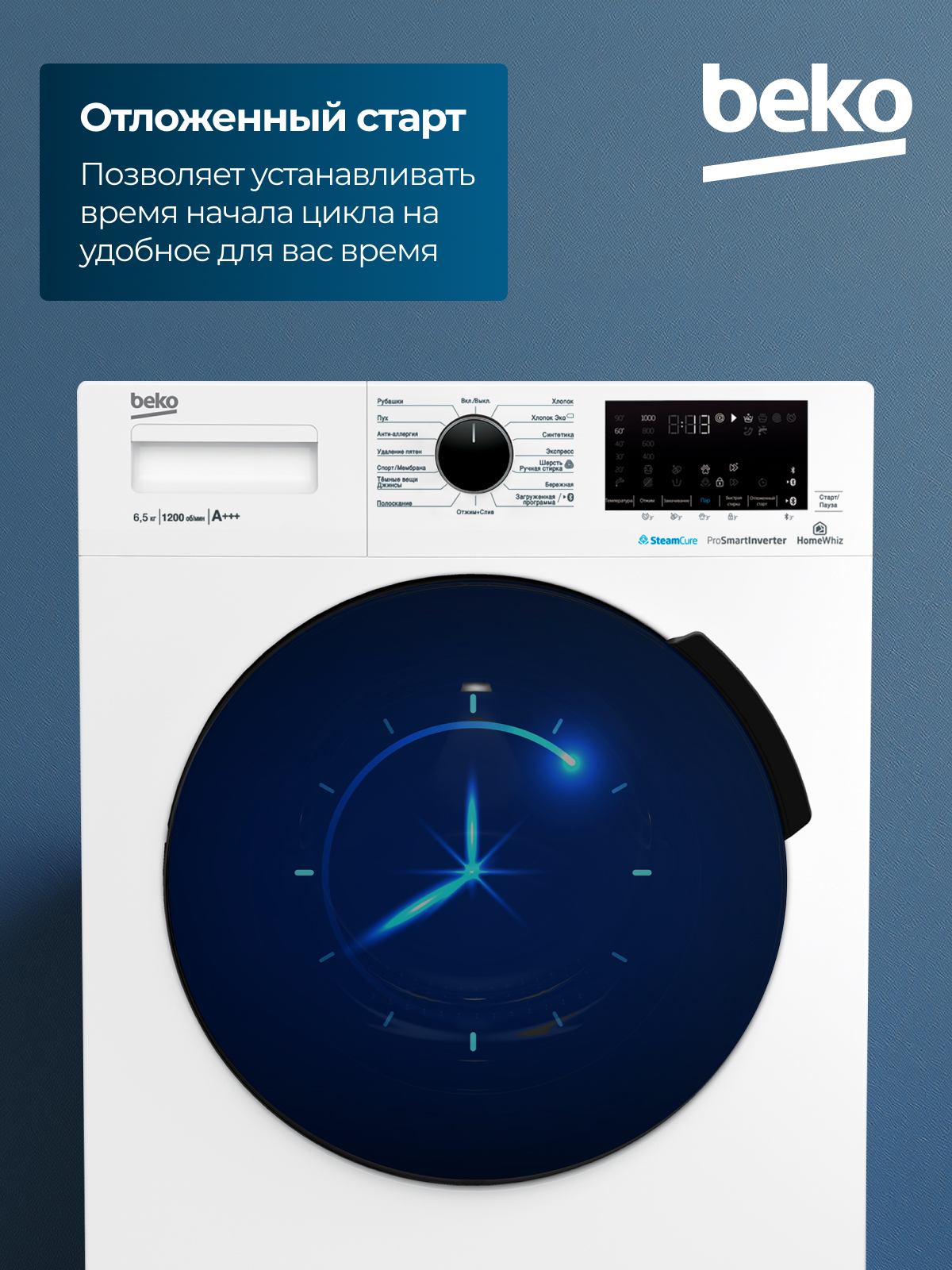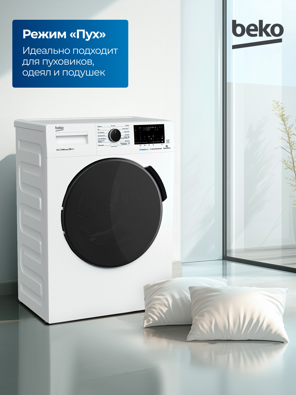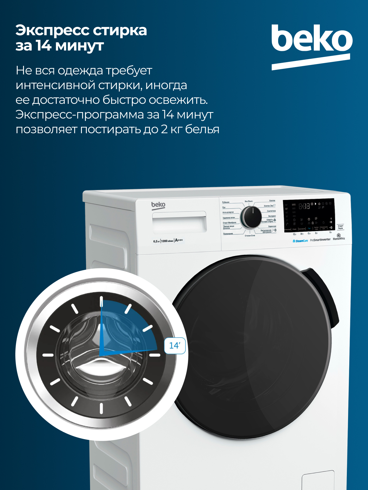 Fast+, Замачивание, Плавная регулировка скорости отжима, Технология обработки паром SteamCure, Электронный контроль дисбаланса