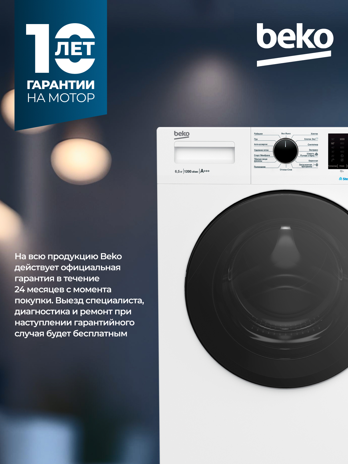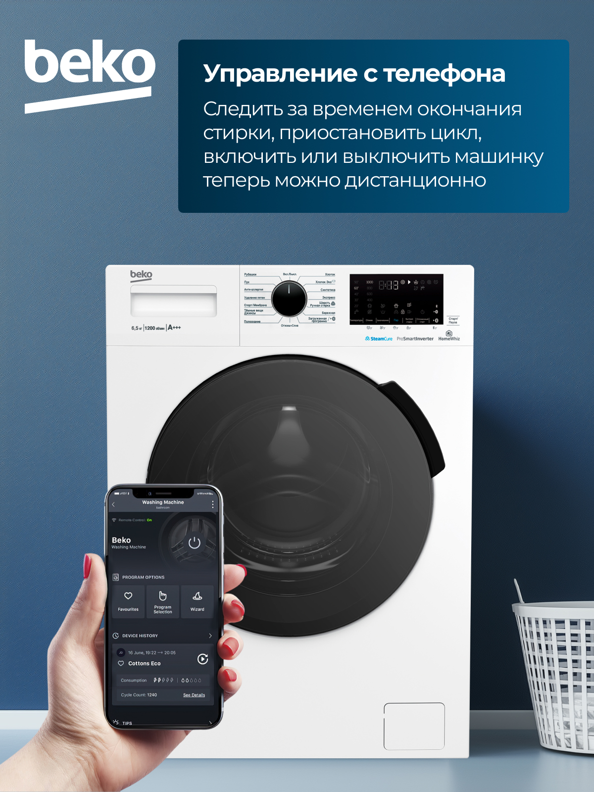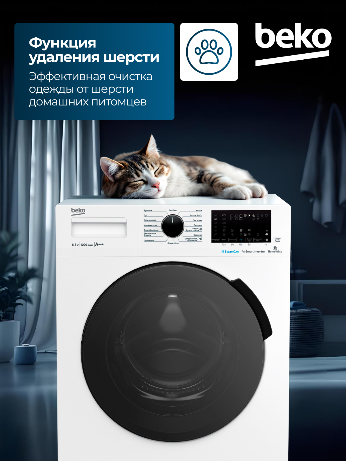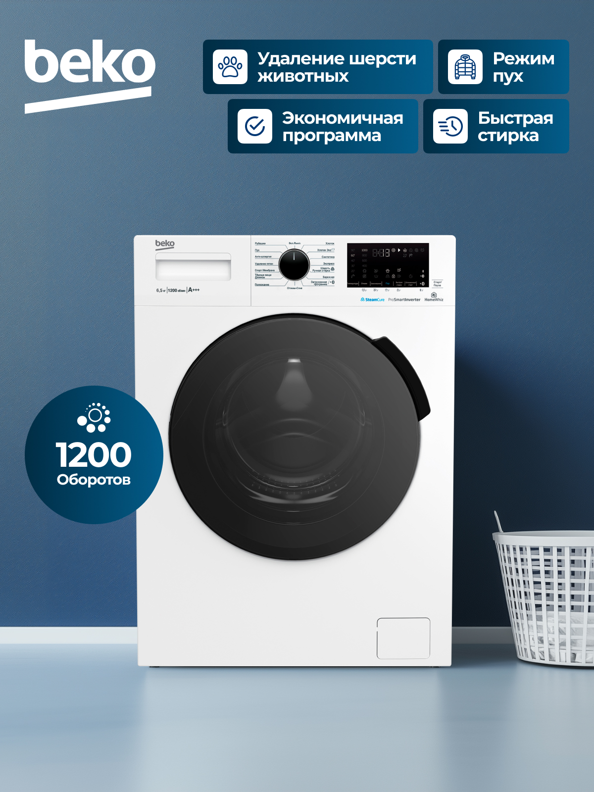 Fast+, Замачивание, Плавная регулировка скорости отжима, Технология обработки паром SteamCure, Электронный контроль дисбаланса