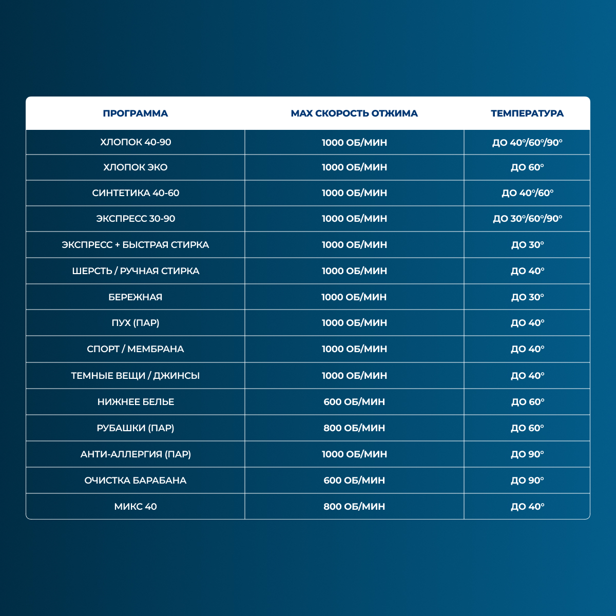 Количество программ стирки