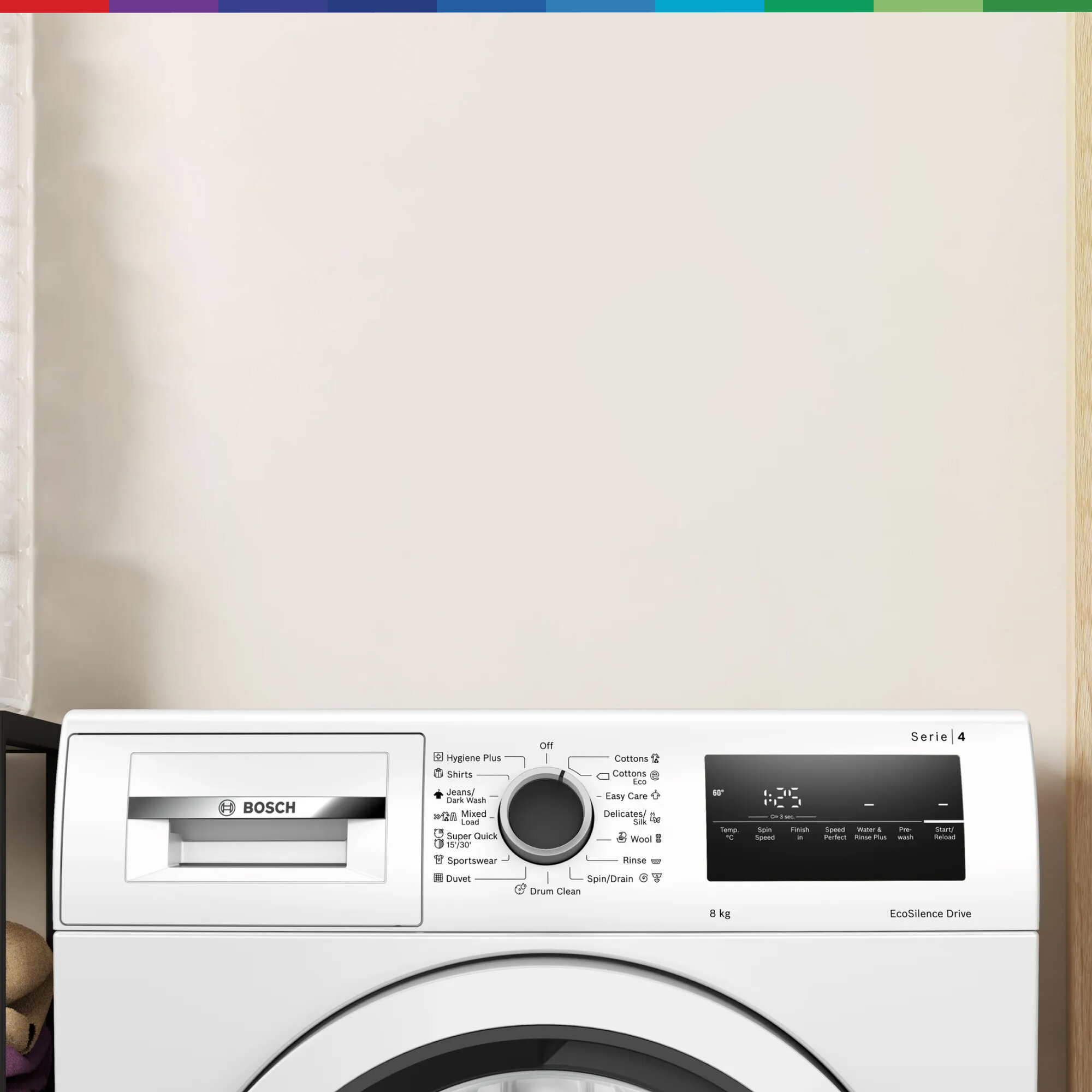 • Сенсорные кнопки: отложенный старт, старт/пауза с функцией дозагрузки, температура, SpeedPerfect, предварительное полоскание, выбор скорости отжима, дополнительное полоскание