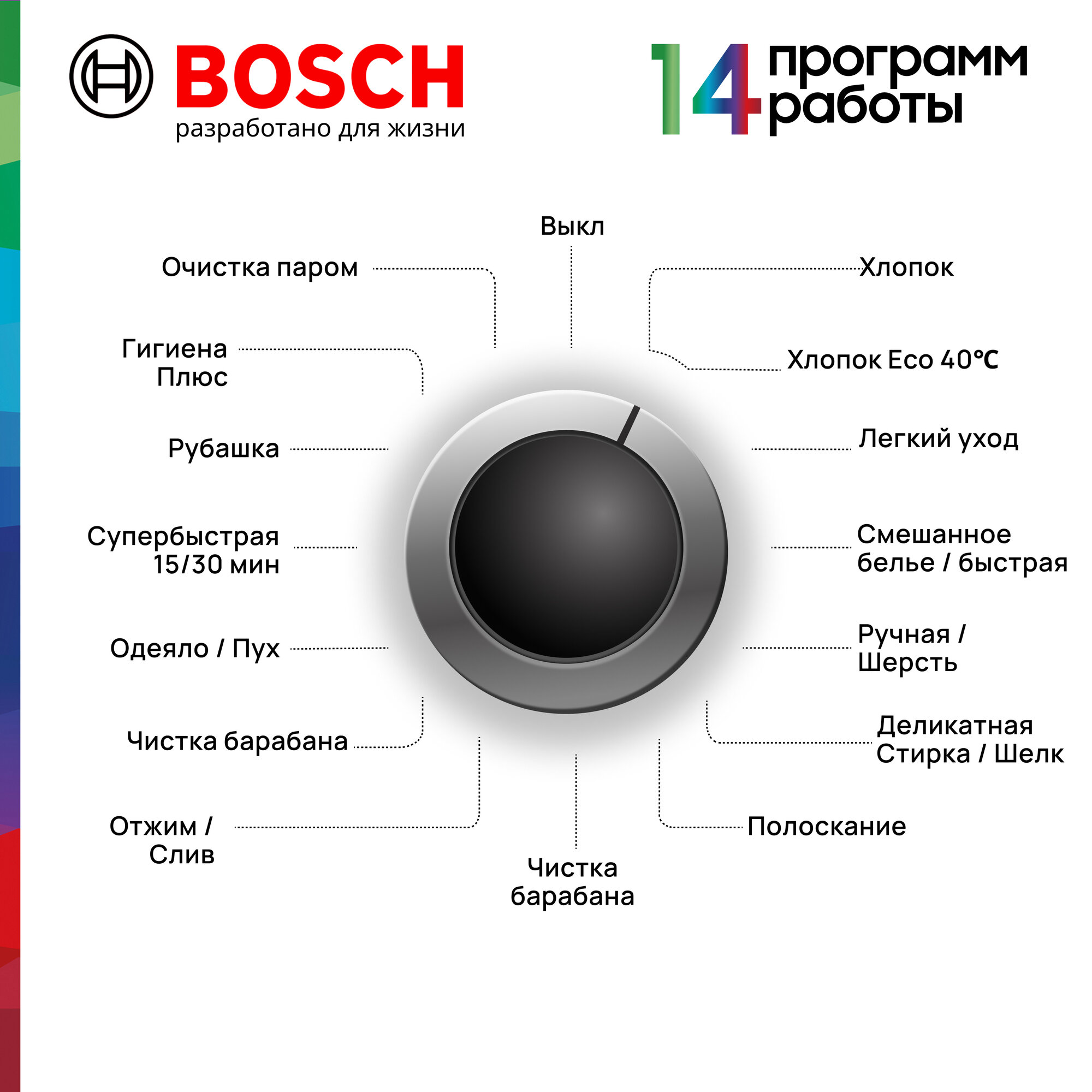 • AquaStop®: гарантия Bosch от поломки из-за воды - в течение всего срока службы устройства .*