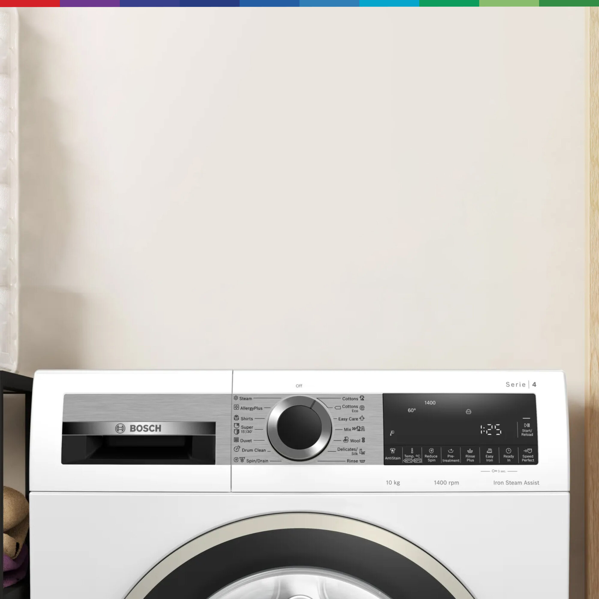 • Вместимость в 10 кг дает возможность уместить больше вещей в одну стирку, экономя время и энергию и обеспечивая идеальные результаты стирки.