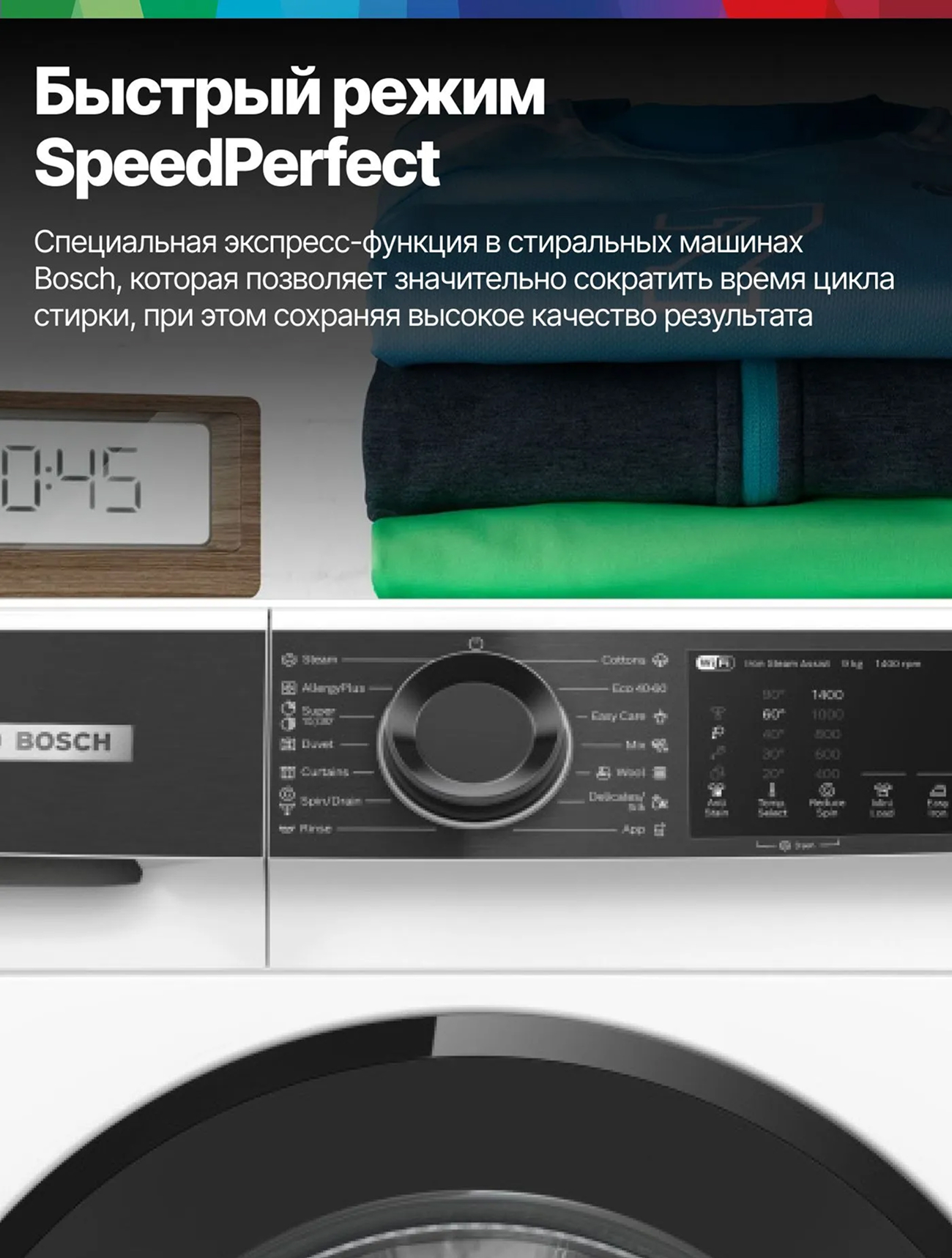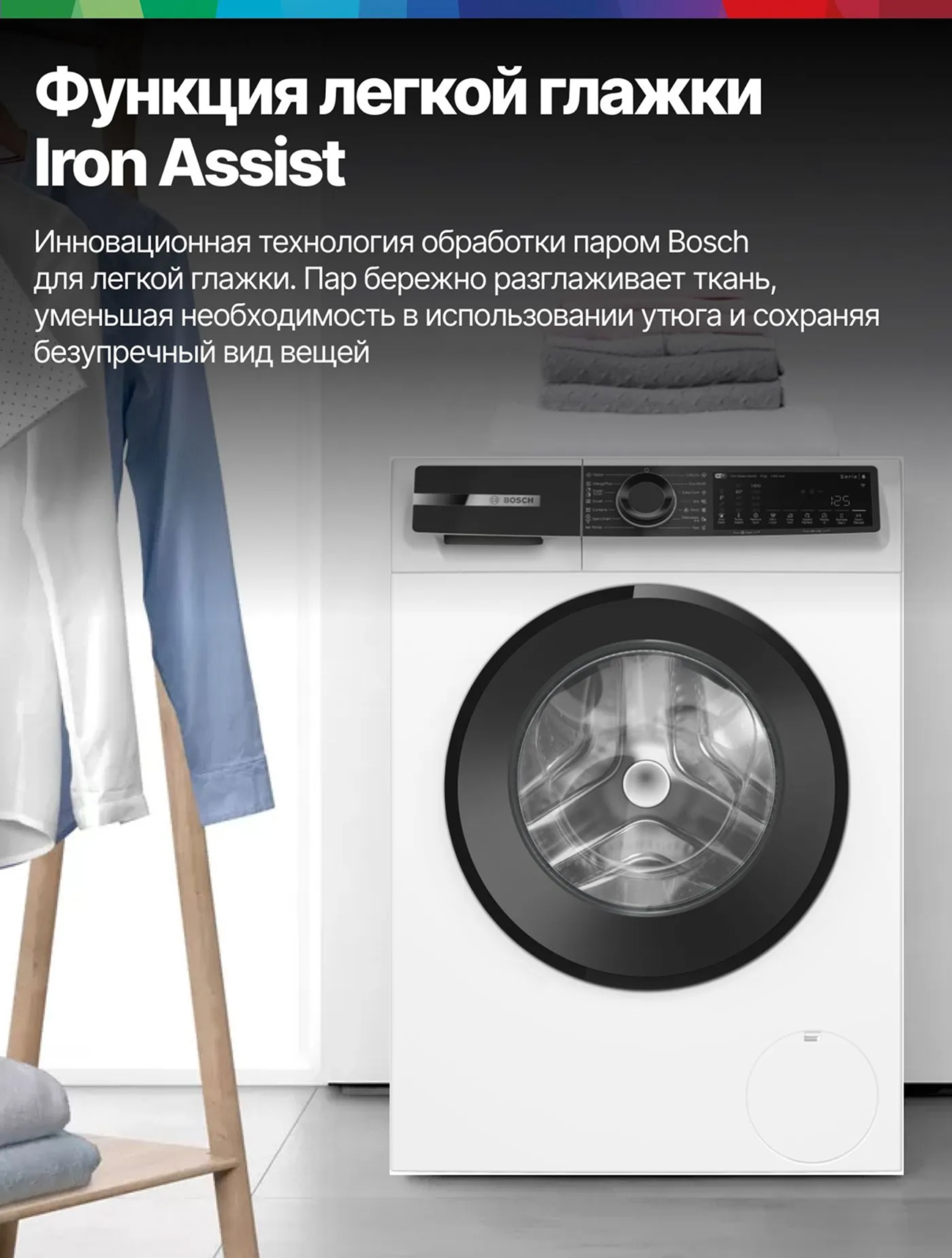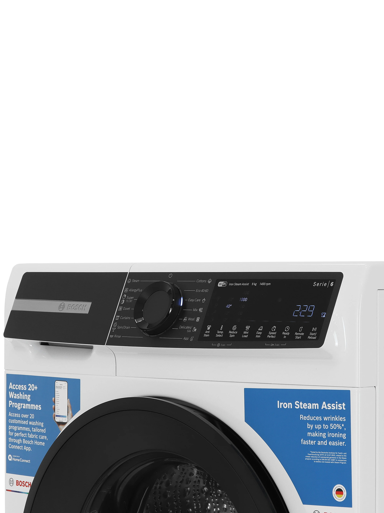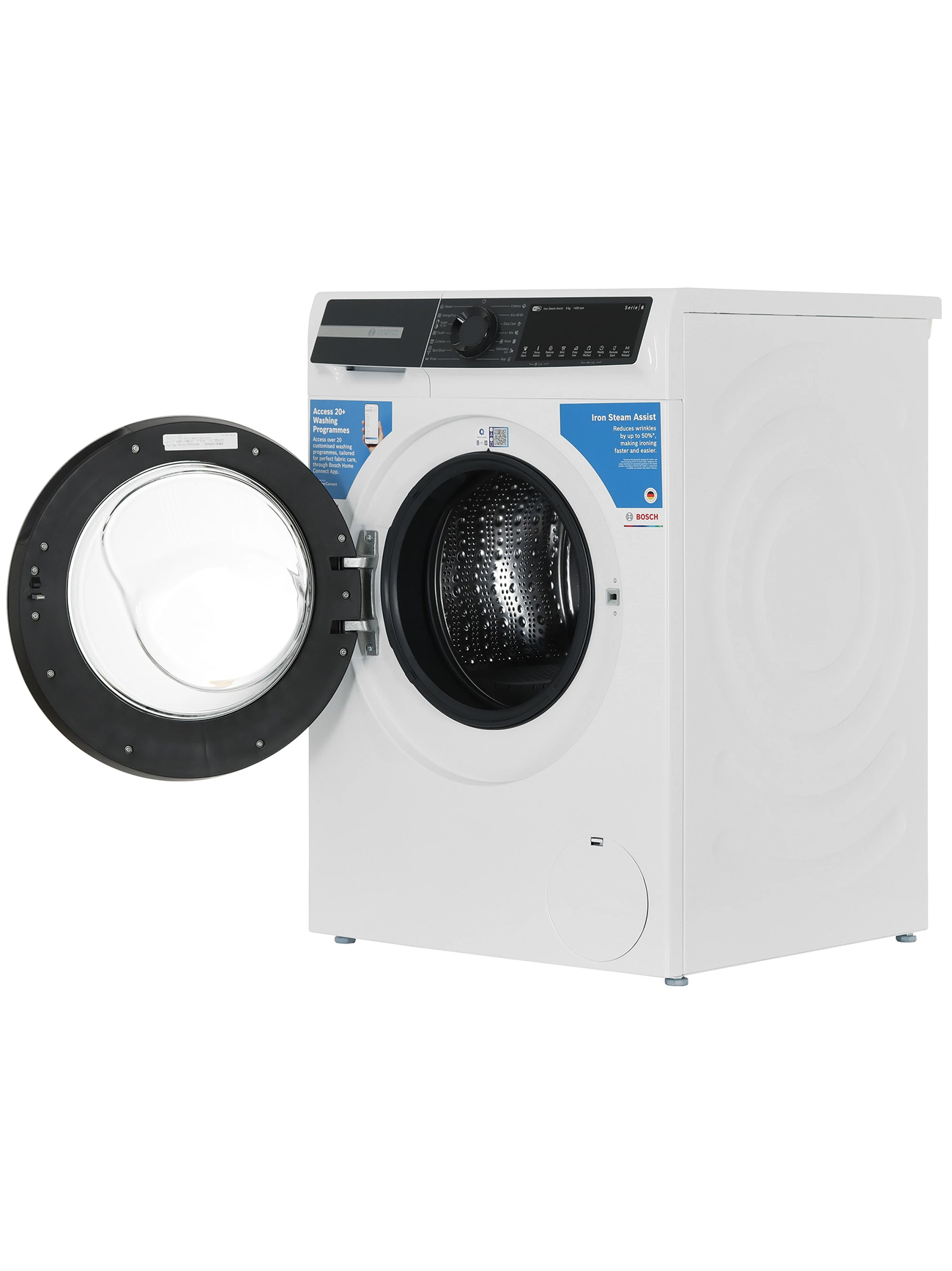 Bosch Стиральная машина WGK244Z0ME, Serie 6, 9 кг, 14 программ, 1400 об/мин, инверторный двигатель, барабан VarioDrum, технология ActiveWater, режим SpeedPerfect, функция Iron Assist, белая