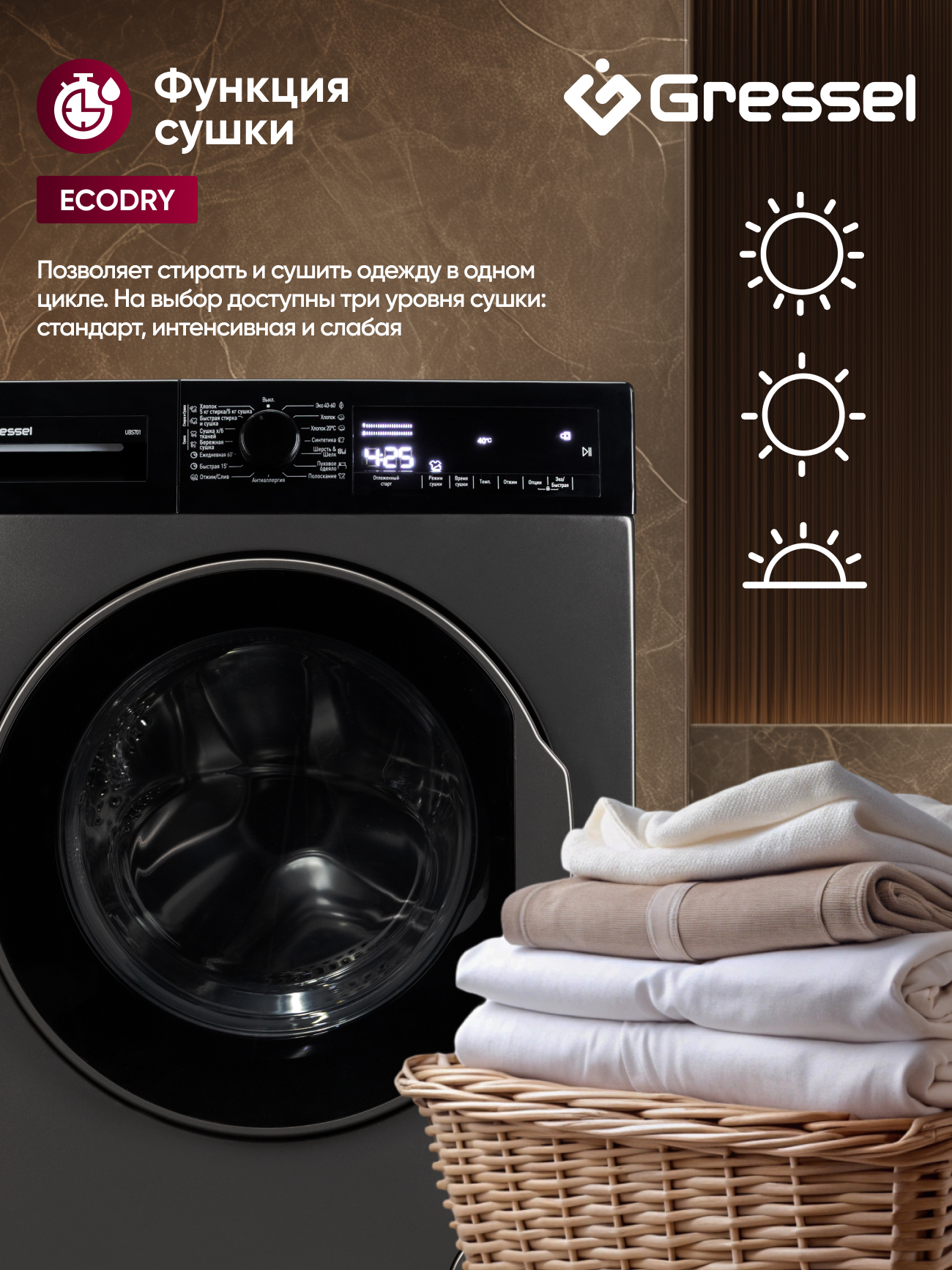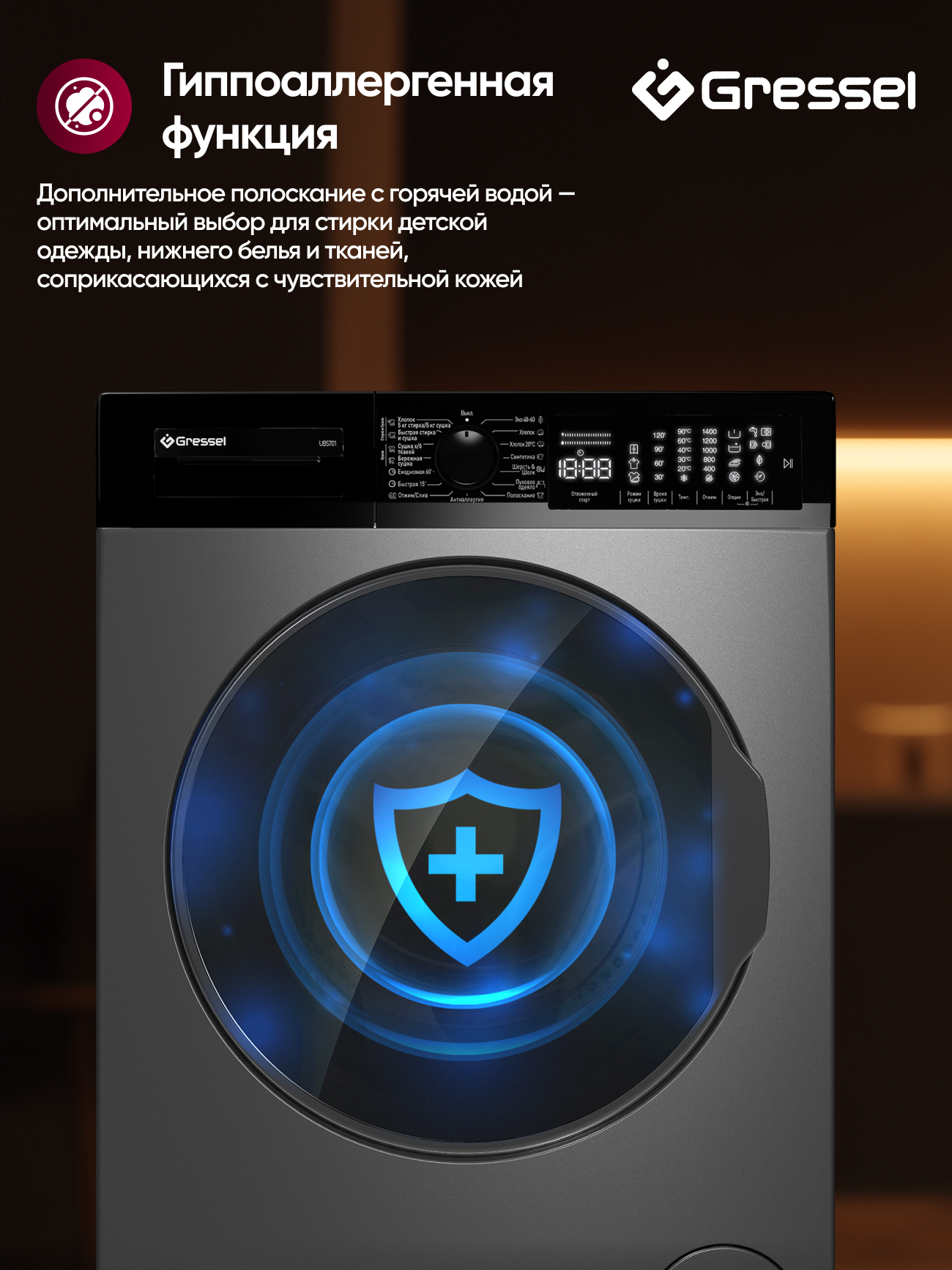 Хлопок 5 кг стирка и сушка; Быстрая стирка и сушка; Эко 40-60; Хлопок; Хлопок 20 С; Синтетика; Шерсть и Шелк; Одеяла; Полоскание; Хлопок сушка; Деликатная сушка; Быстрая 60' 60С; Экспресс 15'; Отжим/Слив; Антиаллегрия
