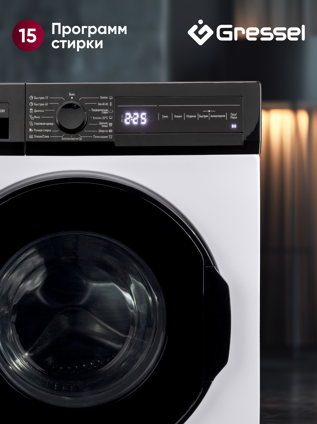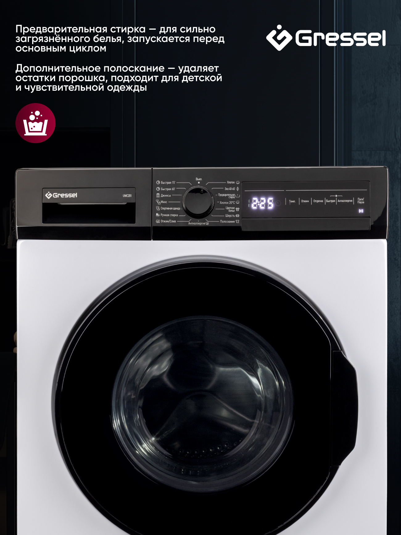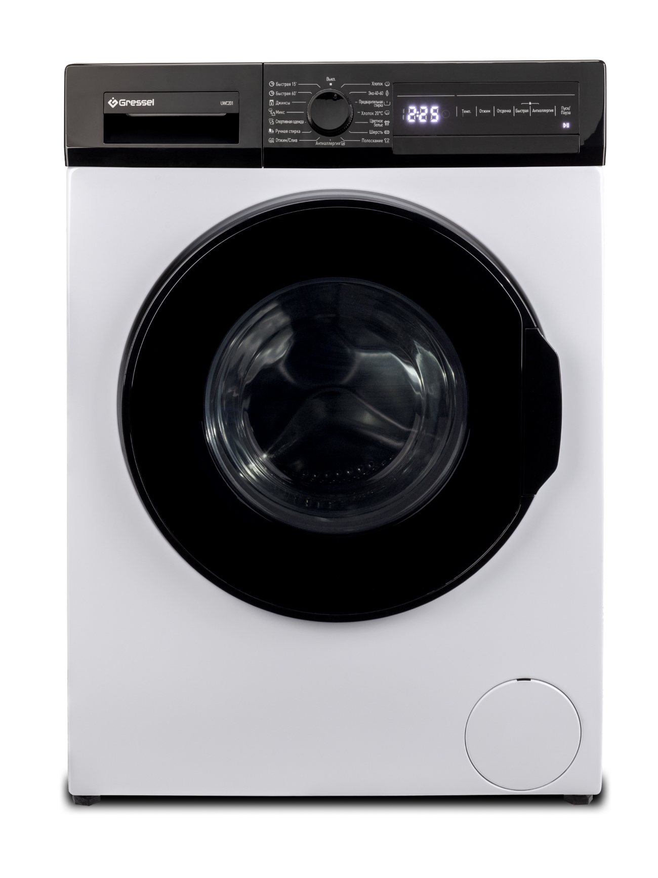 Несмотря на высокую производительность, машина остаётся энергоэффективной — класс A и потребление энергии 2,13 кВтч на цикл. Сенсорная панель с цифровым дисплеем показывает текущий режим и время до завершения, а белый корпус придаёт модели современный и лаконичный вид. Gressel UWC201 — это надёжность, компактность и функциональность в одном стильном решении.