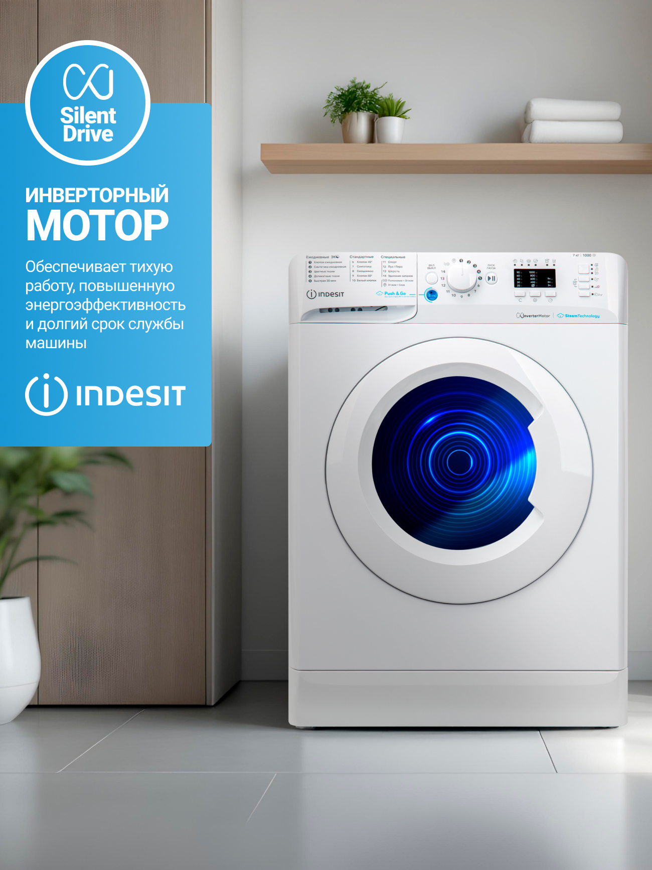 Стиральная машина Indesit — это отличный выбор для тех, кто ищет надежное и функциональное решение для стирки. С загрузкой до 7 кг и скоростью отжима 1000 об/мин, она справляется с большими объемами белья, обеспечивая качественный результат.