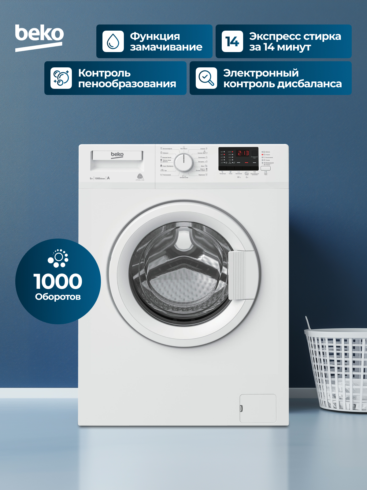 Fast+, Замачивание, Плавная регулировка скорости отжима, Экстра полоскание, Электронный контроль дисбаланса