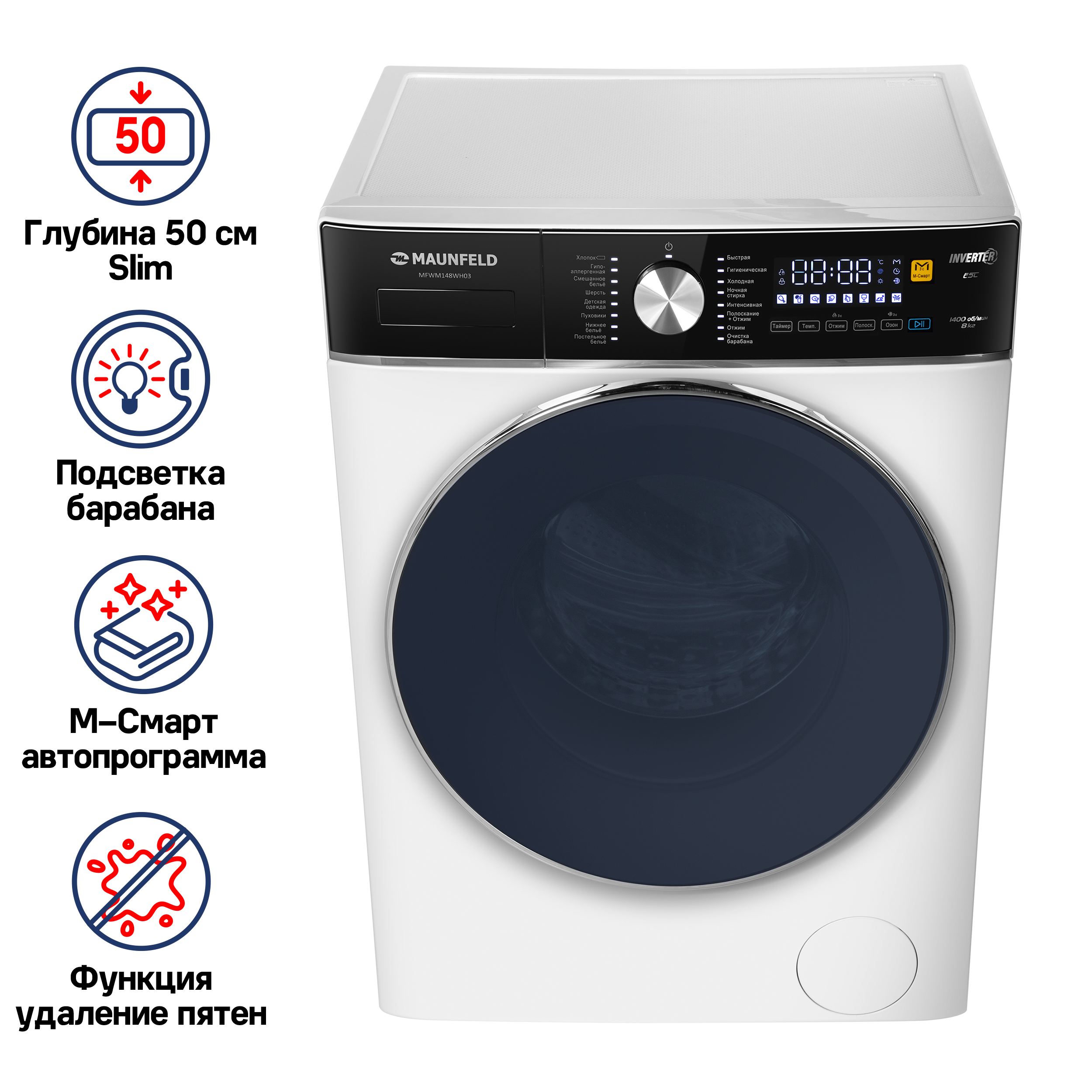 М-Смарт - поможет определить вес белья и подобрать оптимальное время и температуру стирки.