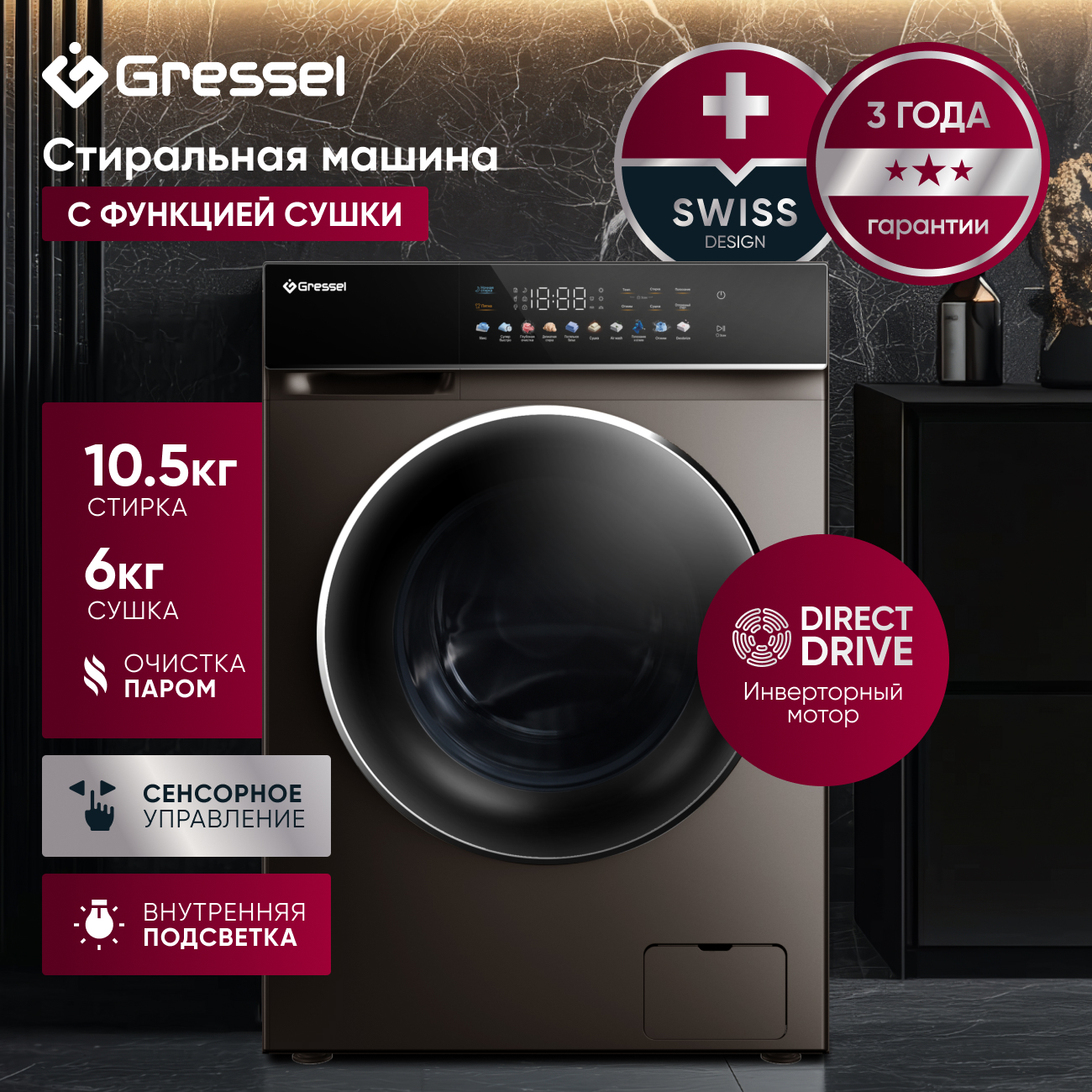 Стирально-сушильная машина GRESSEL UBS603 10.5 – стиль и технологии для идеального ухода за бельём