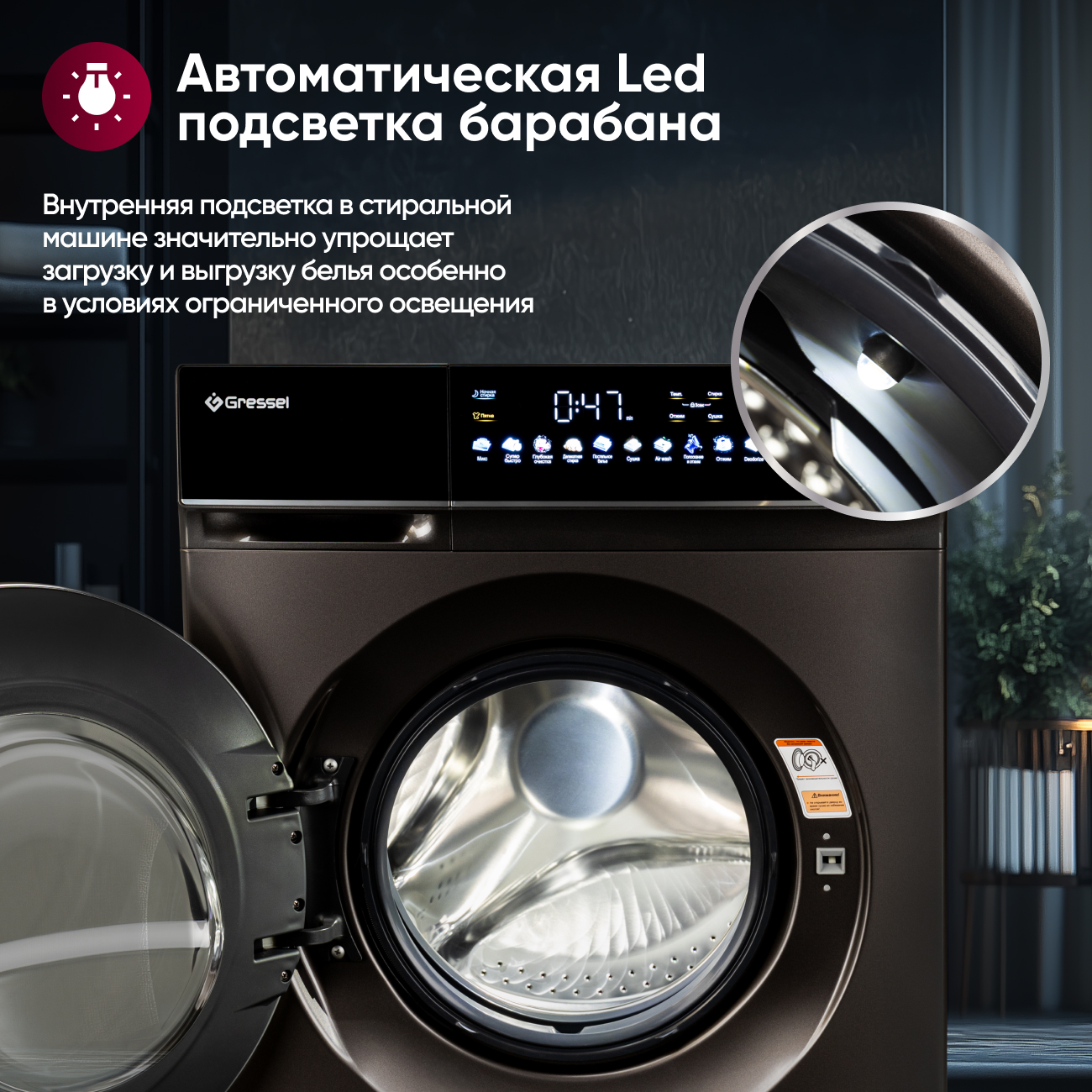 LED-дисплей: Интуитивно понятное управление, отображение оставшегося времени и статуса дверцы.