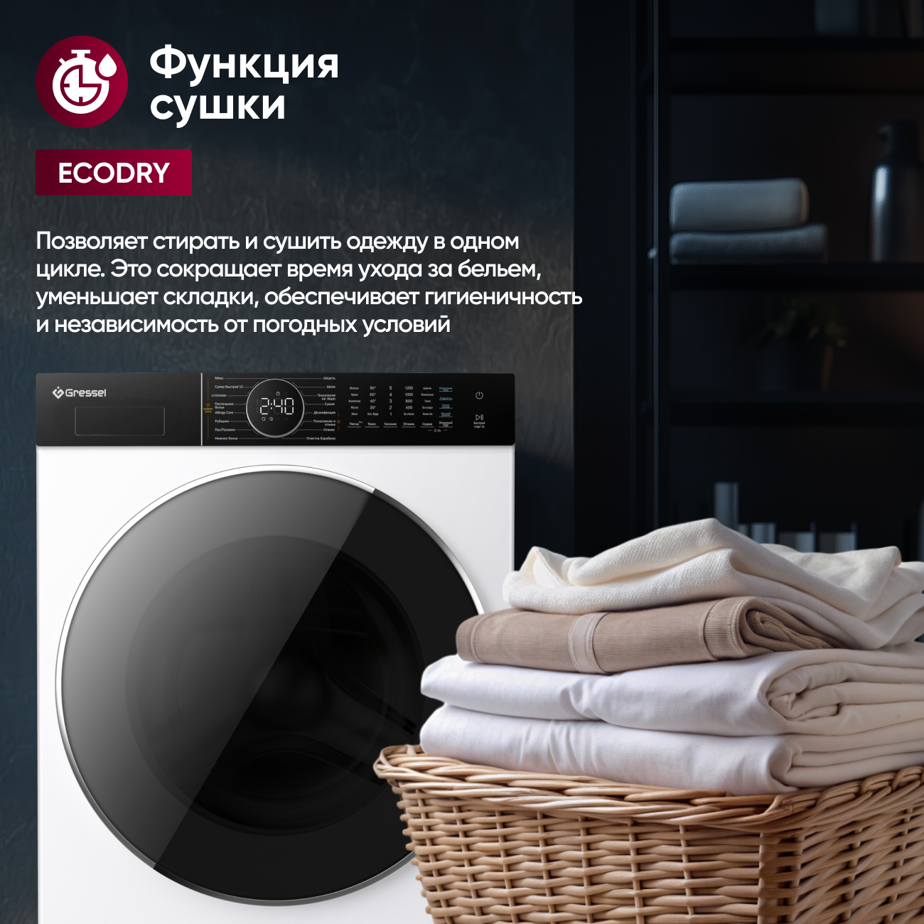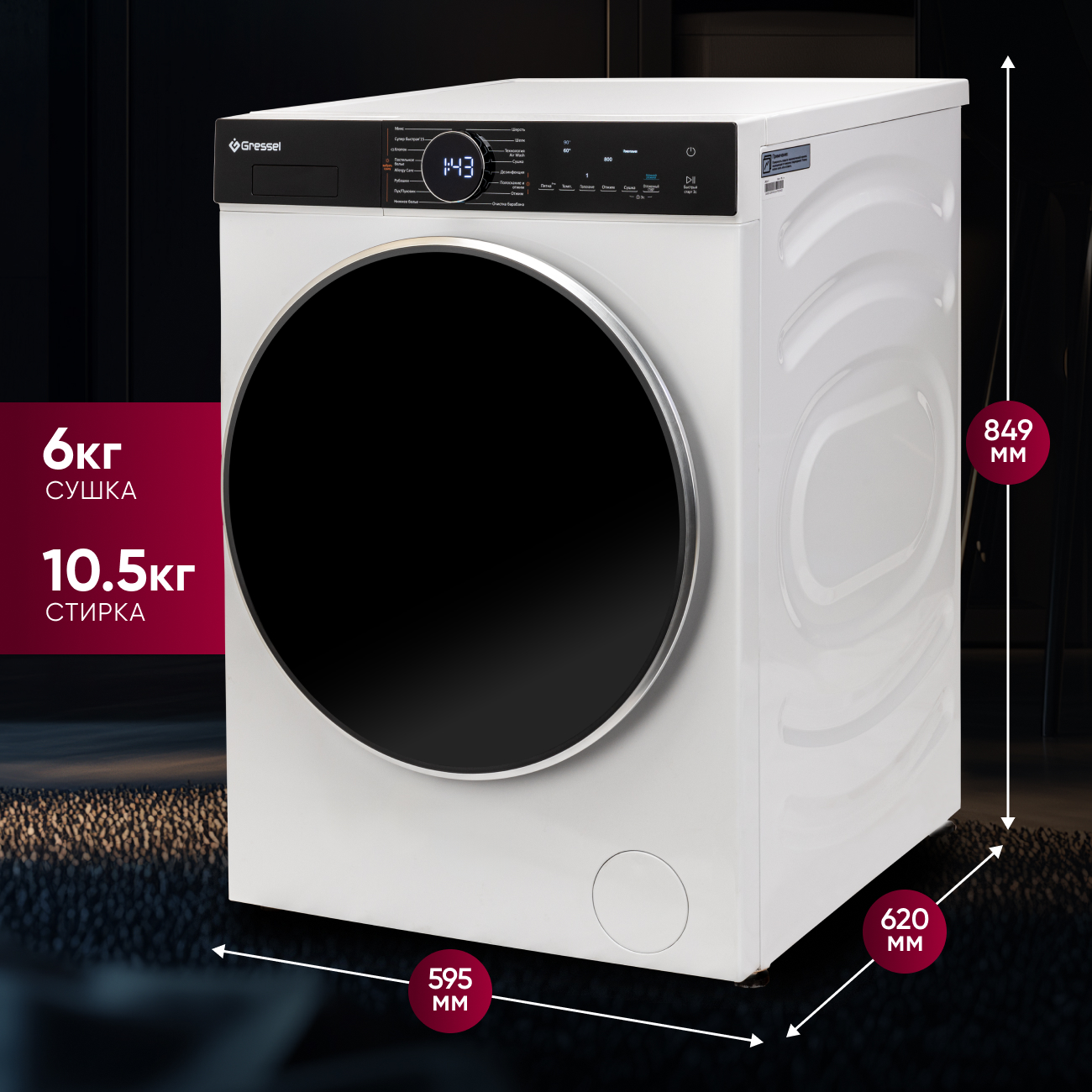 Стиральная машина с сушкой Gressel UWS601 — это комбинация надежности, инновационных функций и стильного дизайна, которая привнесет удобство и качество в уход за вашим гардеробом.