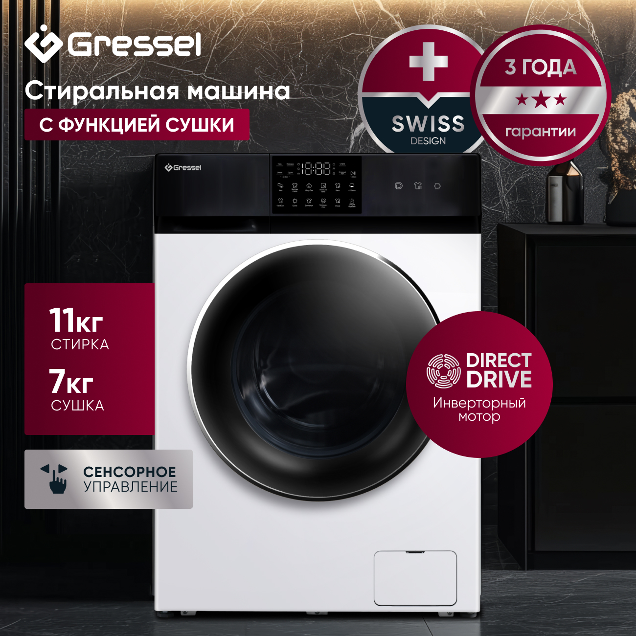 Стиральная машина с сушкой Gressel UWS602 (11 кг) с инверторным мотором Direct Drive и дозагрузкой белья