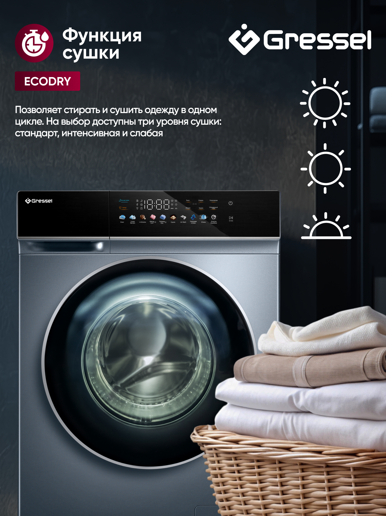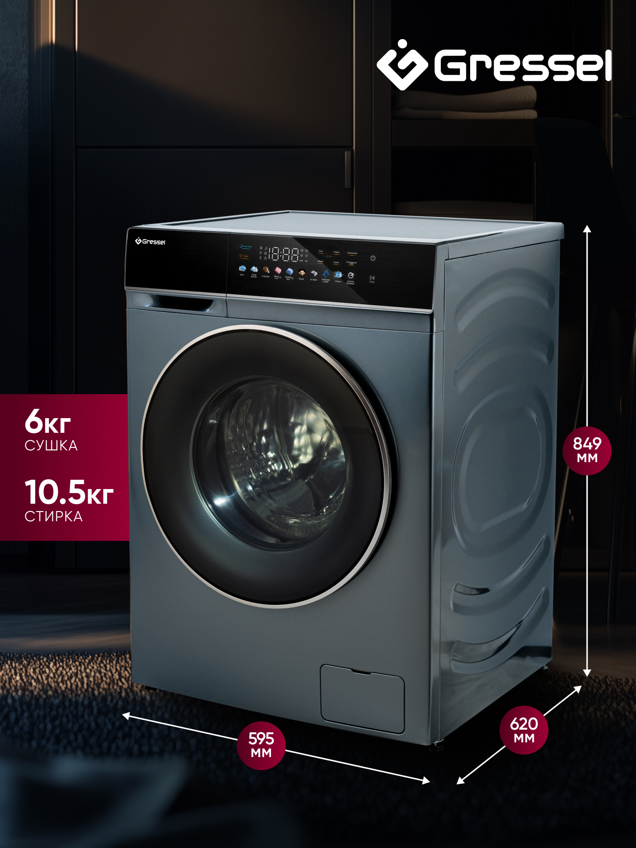 Представляем стиральную машину Gressel UHS603, которая сочетает в себе продвинутые технологии стирки и сушки для обеспечения безупречного ухода за вашим гардеробом. Это устройство не только стирает, но и сушит вашу одежду, делая процесс ухода за бельем максимально удобным и эффективным.