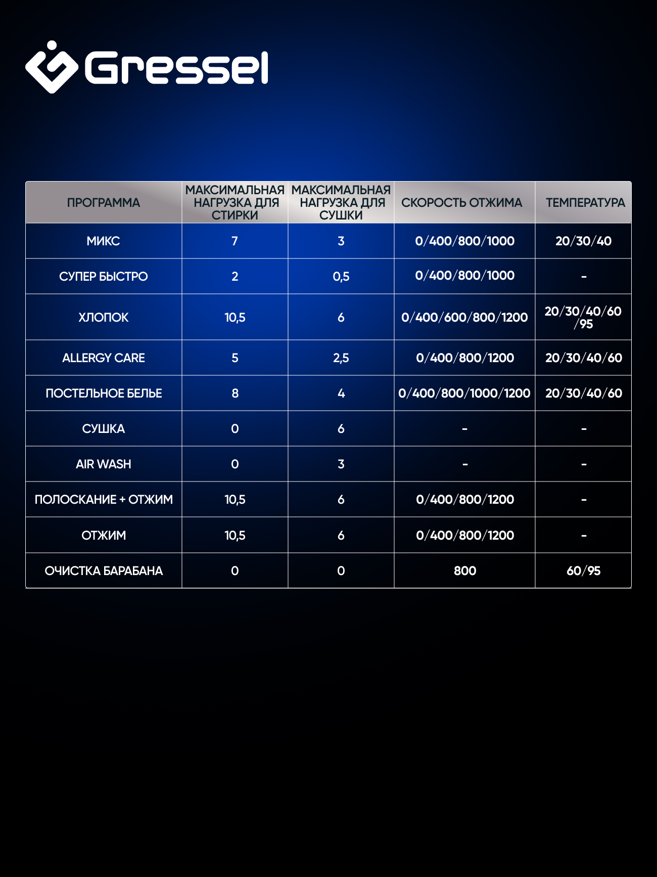 Выбирая стиральную машину Gressel UHS603, вы выбираете надежность, инновации и исключительный уход за вашим гардеробом каждый день.
