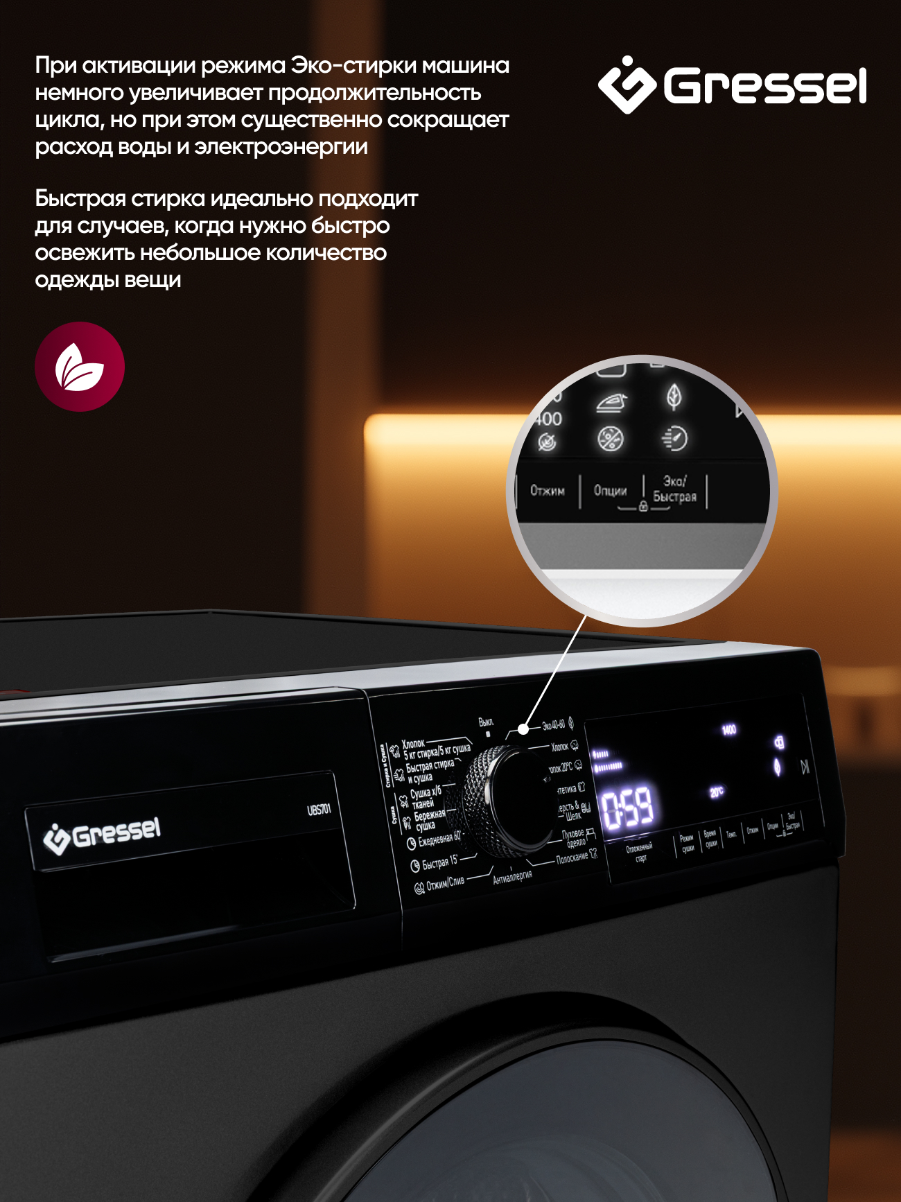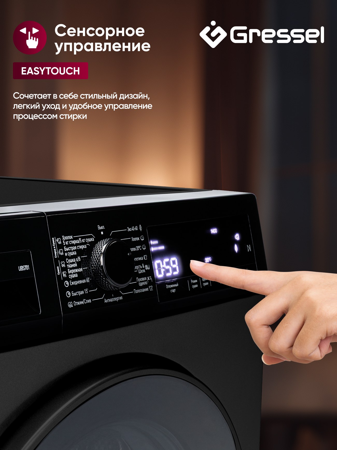 Хлопок 5 кг стирка и сушка; Быстрая стирка и сушка; Эко 40-60; Хлопок; Хлопок 20 С; Синтетика; Шерсть и Шелк; Одеяла; Полоскание; Хлопок сушка; Деликатная сушка; Быстрая 60' 60С; Экспресс 15'; Отжим/Слив; Антиаллегрия