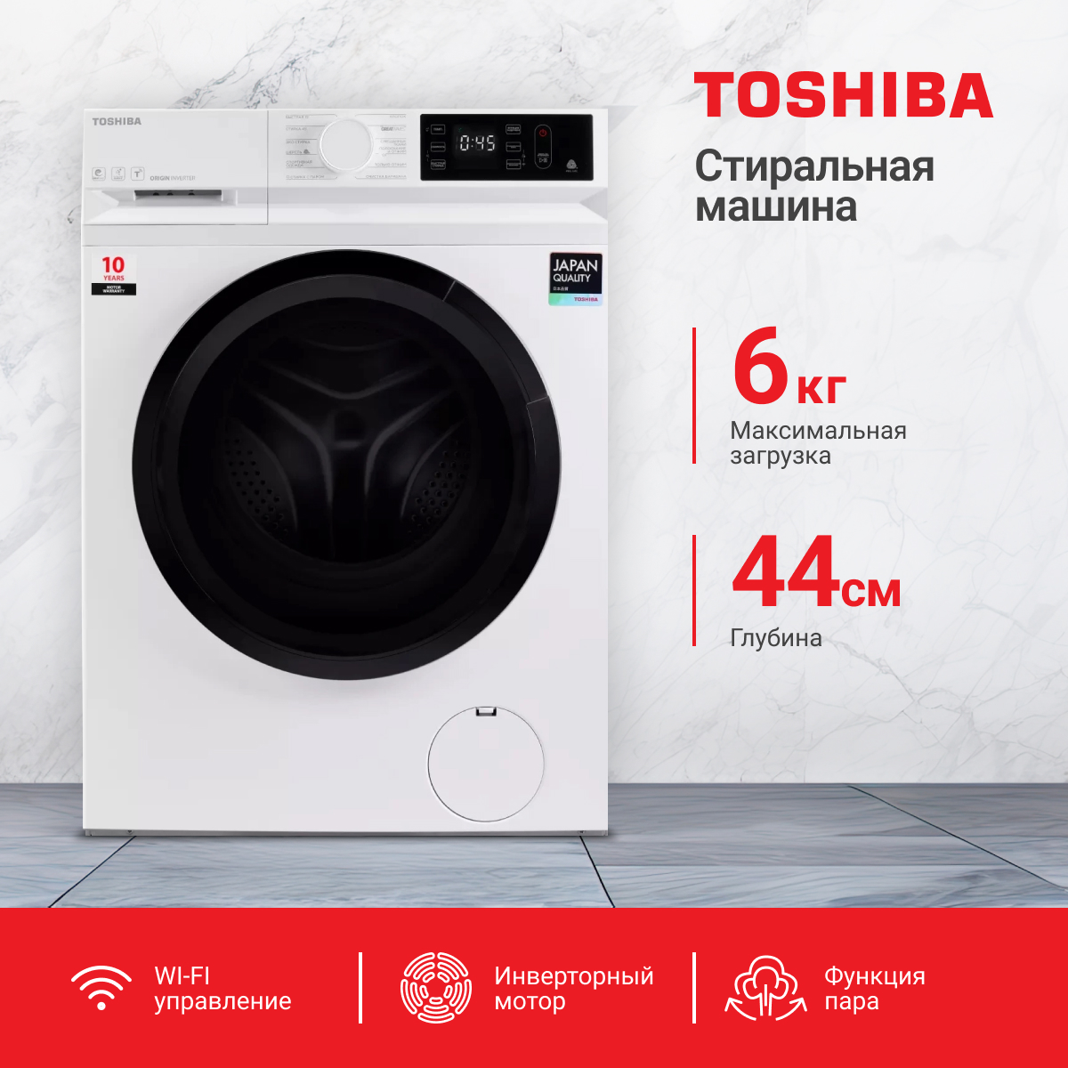 Стиральная машина Toshiba TW-BL70A2UZ (WK) с фронтальной загрузкой способна очищать сразу до 6 кг белья. Интенсивность оборотов при отжиме и стирке составило 1200 в минуту. Инверторный мотор обеспечивает бесшумную стирку и характеризуется длительным сроком эксплуатации.
