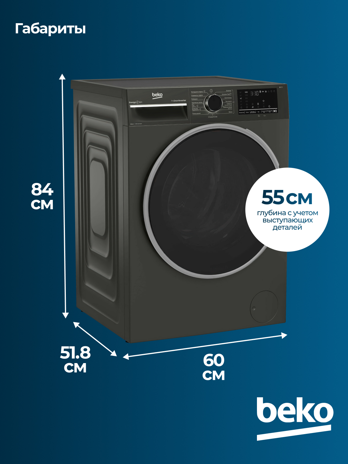 Барабан из нержавеющей стали объемом 49 литров отличается долговечностью, увеличенный люк диаметром 34 см с итальянским стеклом обеспечивает удобную загрузку. Класс энергопотребления А гарантирует экономичную работу. Габариты модели составляют 84,5×60×55 см, вес — 63 кг. Корпус выполнен в антрацитовом цвете с элегантным стеклянным люком.