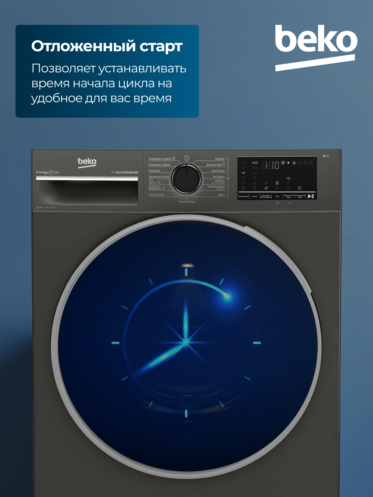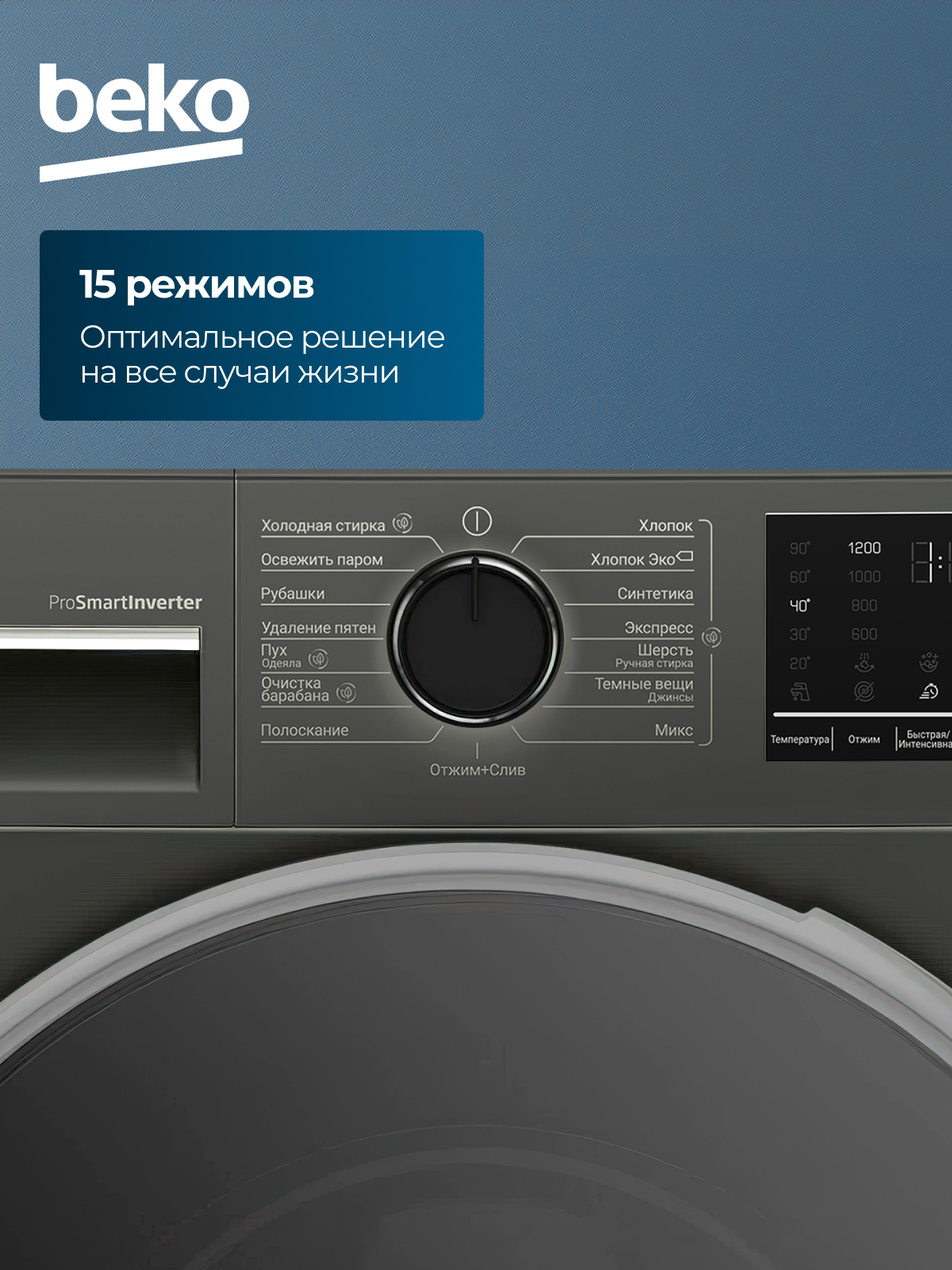 Стиральная машина с технологией обработки паром SteamCure обеспечивает бережный уход за вещами и помогает удалить до 99,9% бактерий и аллергенов. Вместительная загрузка до 8,5 кг подходит для большой семьи, а скорость отжима до 1200 об/мин гарантирует эффективное удаление влаги. В распоряжении пользователя 15 программ, включая Мини 14, Рубашки, Удаление пятен, Анти-аллергию и специальную Загруженную программу. Дополнительно доступны режимы замачивания, быстрой стирки, очистки от шерсти животных и автоматическая очистка барабана. Управление осуществляется через цифровой дисплей с индикацией хода выполнения программы, предусмотрен отложенный старт до 24 часов, а также плавная регулировка скорости отжима. Машина оснащена защитой от детей и системой автоматического контроля уровня воды.