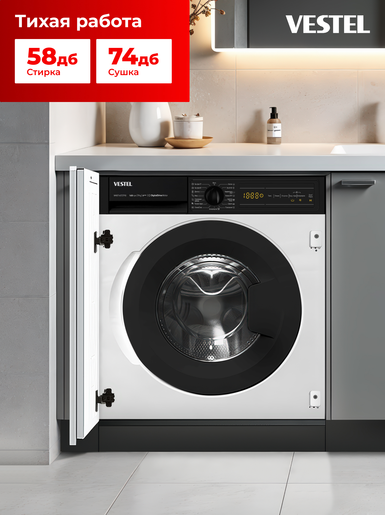 Уровень шума при стирке, дБ