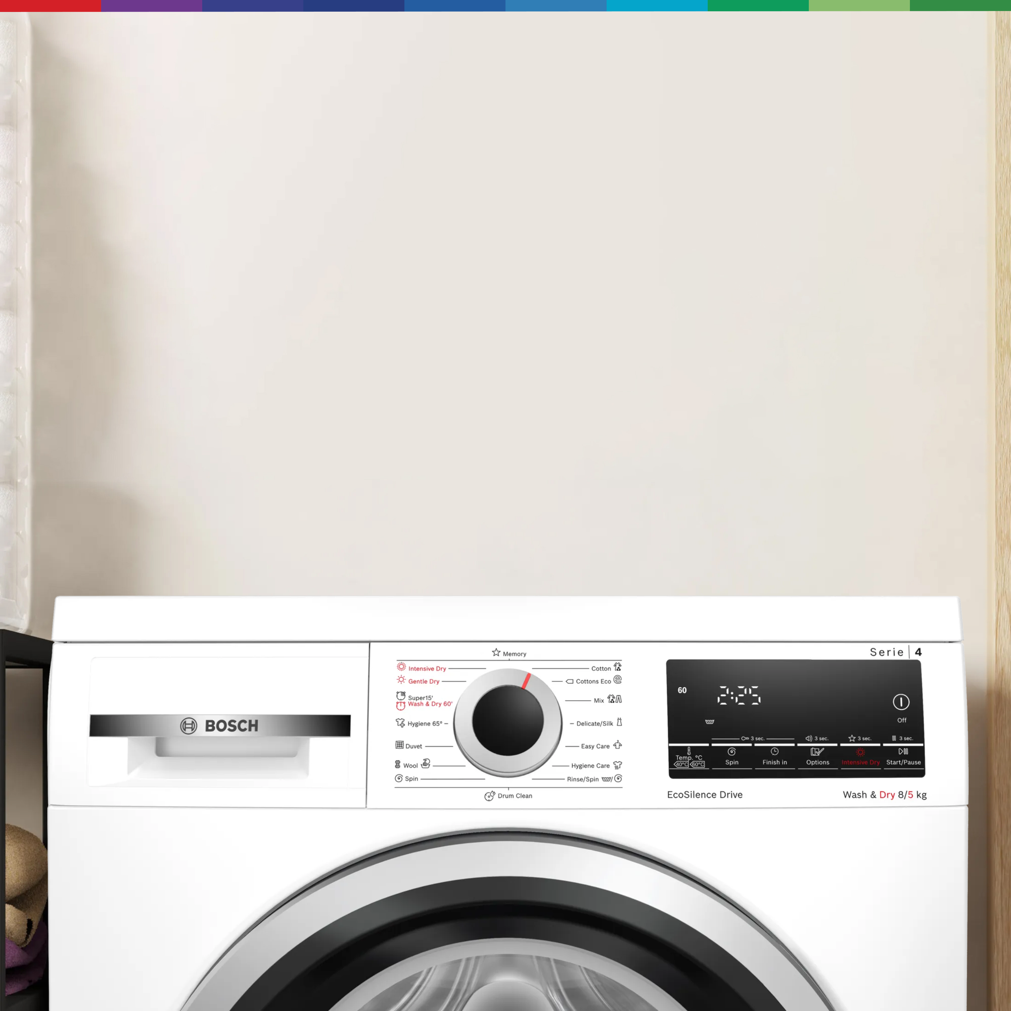 Забудьте о громоздких сушилках и долгих часах ожидания! Bosch WDS28460OE — это стиральная и сушильная машина в одном корпусе. Идеальное решение для небольших квартир, где каждый сантиметр на счету.