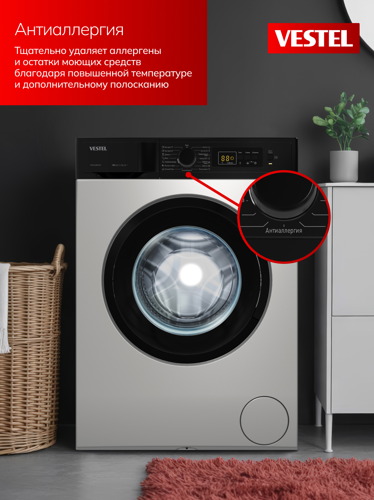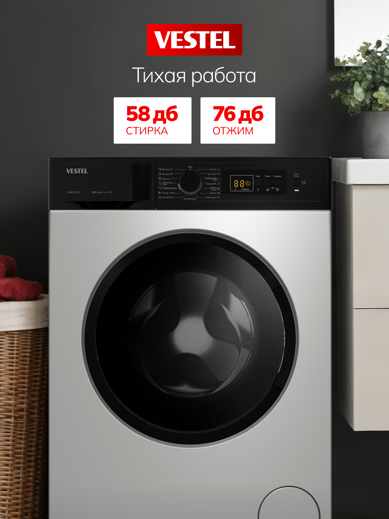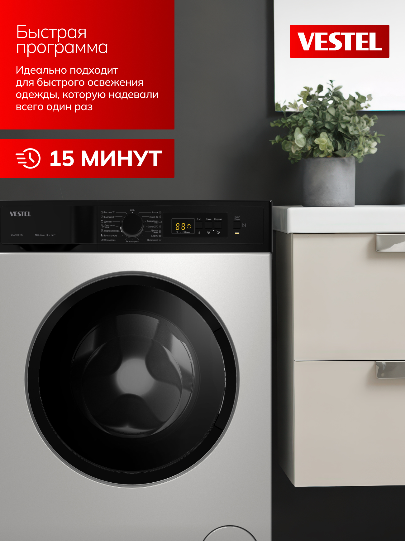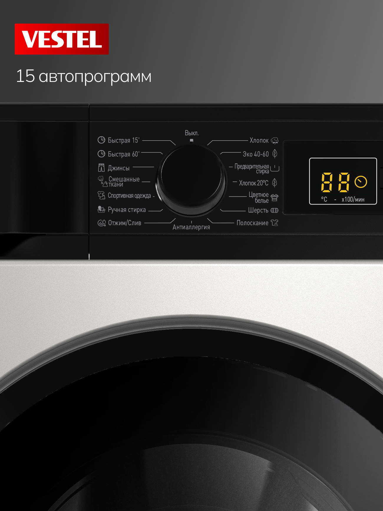 Стиральная машина Vestel WM4100BT0S — компактное и удобное решение для небольших пространств. Благодаря глубине всего 36,2 см модель легко помещается даже в ограниченном пространстве, при этом позволяет стирать до 4 кг белья за один цикл.