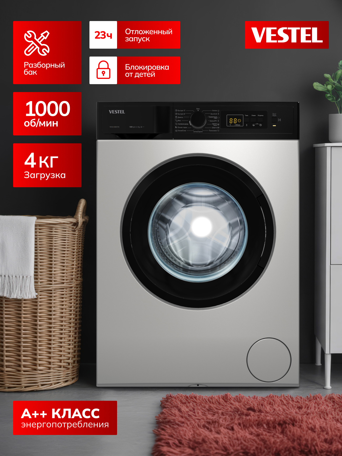 Стиральная машина узкая Vestel 4 кг, 1000 об/мин, 15 программ, глубина 36,2 см, A++