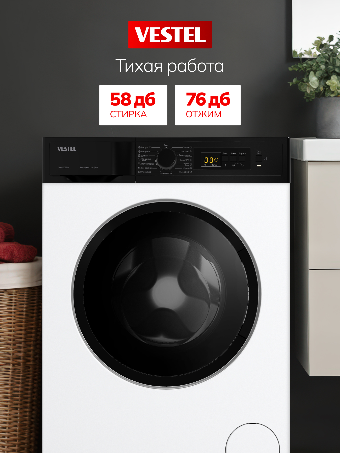 Уровень шума при стирке, дБ