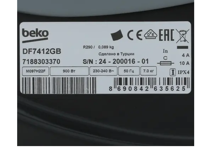 Beko DF7412GB допускает подключение к сливу для автоматического удаления жидкости в канализацию. Система реверсивного вращения равномерно распределяет белье по барабану, ускоряет процесс сушки, уменьшает количество заломов и складок на одежде. Встроенный фильтр от мелких частиц задерживает пыль из белья и очищает воздух в помещении.