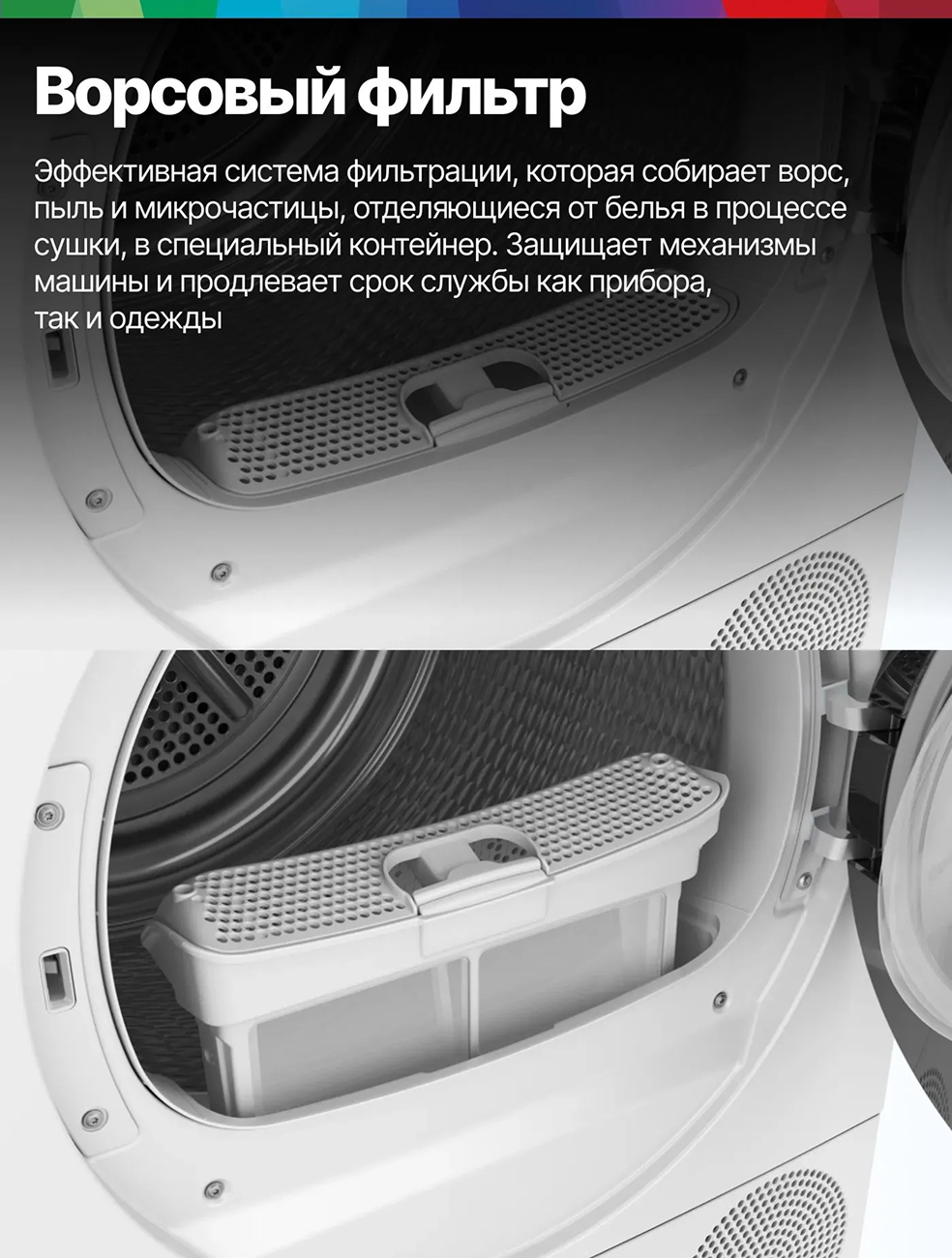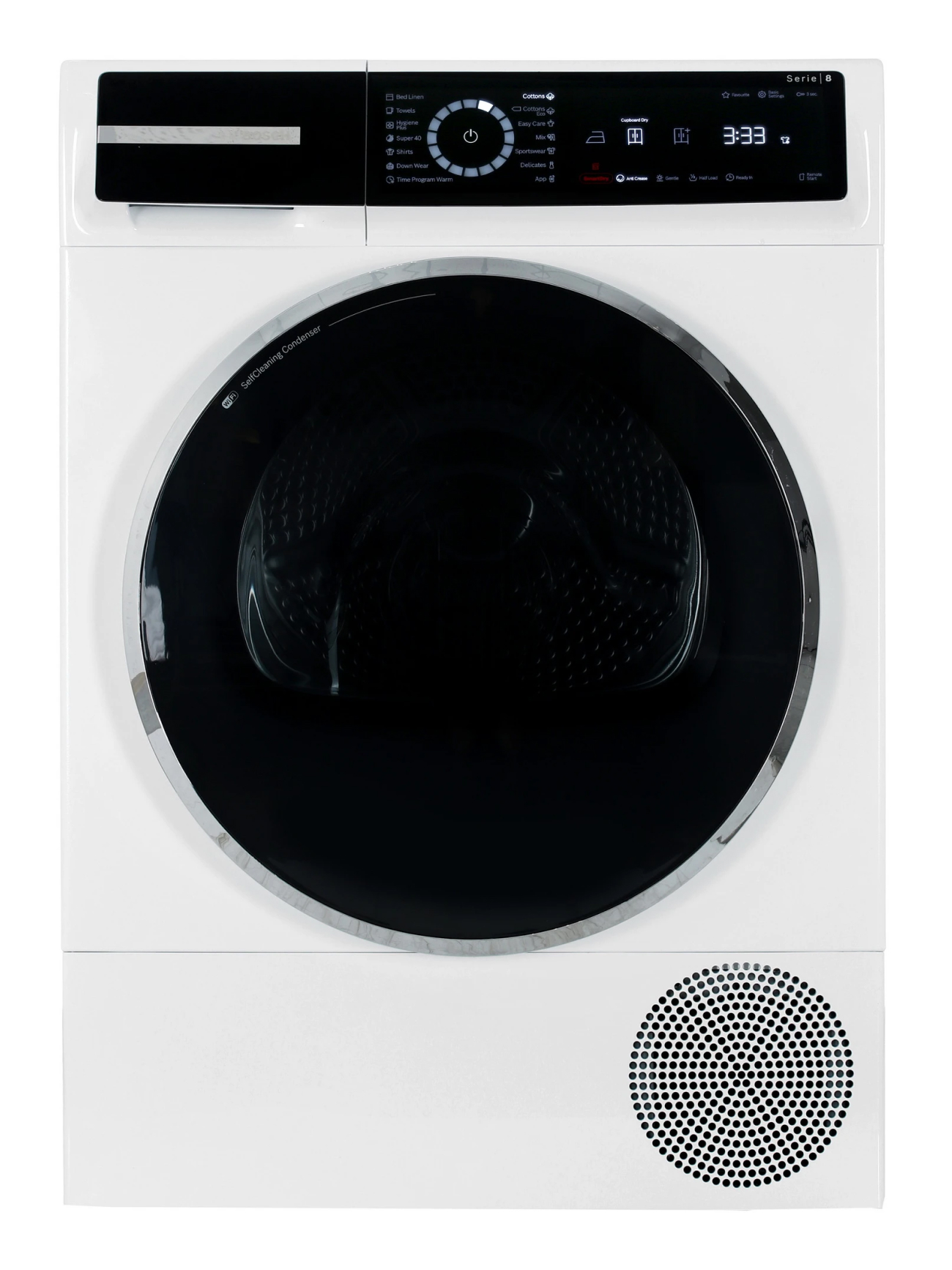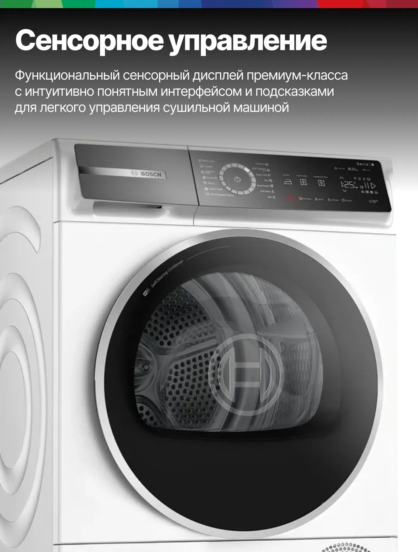 Это обеспечивает эффективность и экономичность процесса сушки, а также позволяет сушить даже самые деликатные ткани. Максимальная загрузка составляет 9 кг, что делает эту модель идеальной для больших семей. Управление машиной осуществляется с помощью сенсорных кнопок Touch control и интуитивно понятного LED-дисплея. Все необходимые индикаторы, такие как заполнения ворсового фильтра или контейнера для конденсата, всегда на виду. Также есть возможность отложенного старта до 24 часов.