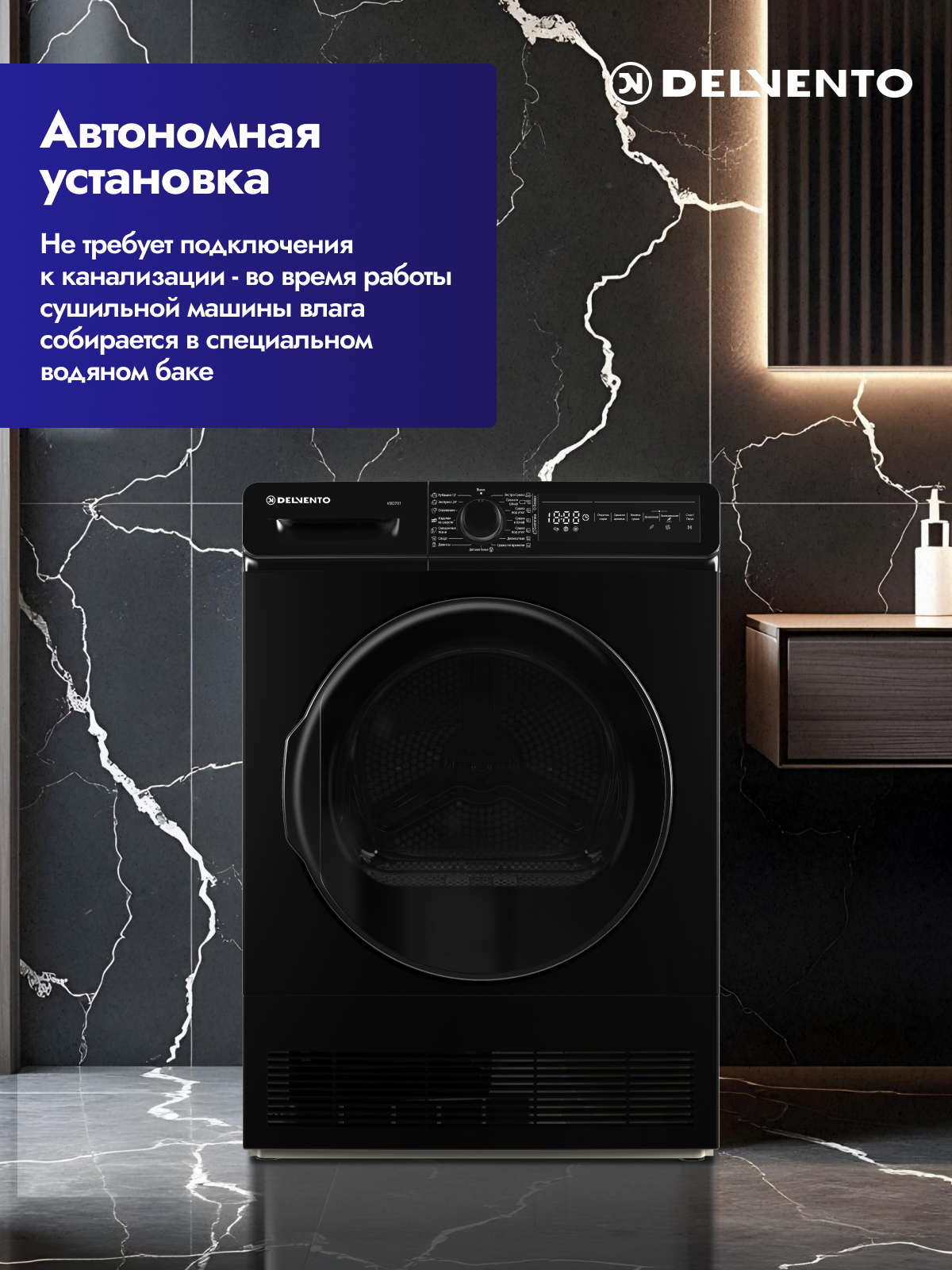 Сушильная машина DELVENTO VBD701 – это стильное и функциональное решение для бережной сушки белья в домашних условиях. Модель VBD701 с максимальной загрузкой 7 кг оснащена 15 программами сушки, включая экспресс-режим, программы для деликатных тканей, таких как шерсть, и режим для рубашек/сорочек. Сенсорное управление и удобный дисплей делают эксплуатацию машины простой и интуитивно понятной. Функция отложенного старта позволит вам запланировать сушку на удобное время, а опция дозагрузки белья даст возможность добавить забытые вещи в процессе работы. Модель VBD701 относится к классу энергопотребления B, что обеспечивает экономичность использования. Защита от детей гарантирует безопасность эксплуатации. DELVENTO VBD701 – это надежный помощник, который сэкономит ваше время и силы, а также позаботится о сохранности ваших любимых вещей.