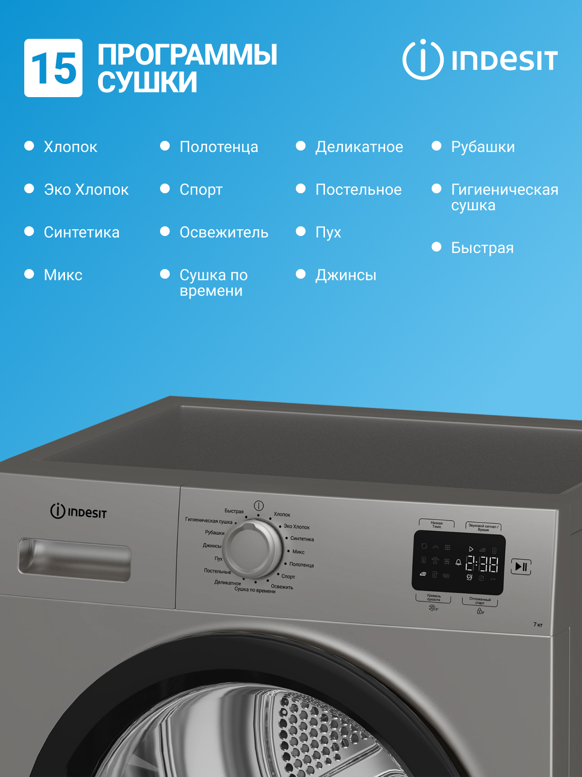Сушильная машина с тепловым насосом от INDESIT представляет собой современное и эффективное решение для ухода за одеждой. Эта модель обладает классом сушки A, что обеспечивает высокую степень сушки и экономию энергии. Благодаря классу энергопотребления A+++, она является одной из самых экономичных сушилок на рынке. Управление машиной осуществляется через электронный дисплей, который позволяет легко выбирать одну из 15 программ сушки и отслеживать оставшееся время до конца процесса. Индикация этапов программы и времени до конца сушки делают использование машины максимально удобным. Дополнительная функция защиты от детей предотвращает случайное активации машины. Отдельно стоящая установка позволяет разместить сушильную машину в любом удобном месте в доме. Эта сушилка от INDESIT — идеальный выбор для тех, кто ценит качество, эффективность и удобство использования.