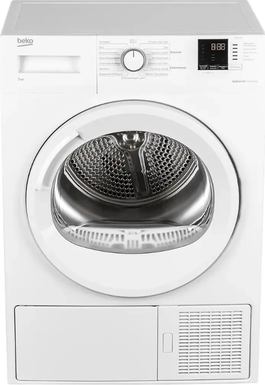 Незаменимым устройством для эффективного ухода за одеждой и текстилем является сушильная машина BEKO DF7412GA. Данная модель турецкого производителя вмещает в себя 7 кг белья и характеризуется низким уровнем энергопотребления. Мощность машины составляет 2700 Вт и позволяет за короткий промежуток времени добиться желаемого результата. Во время работы не создается дискомфортного уровня шума.