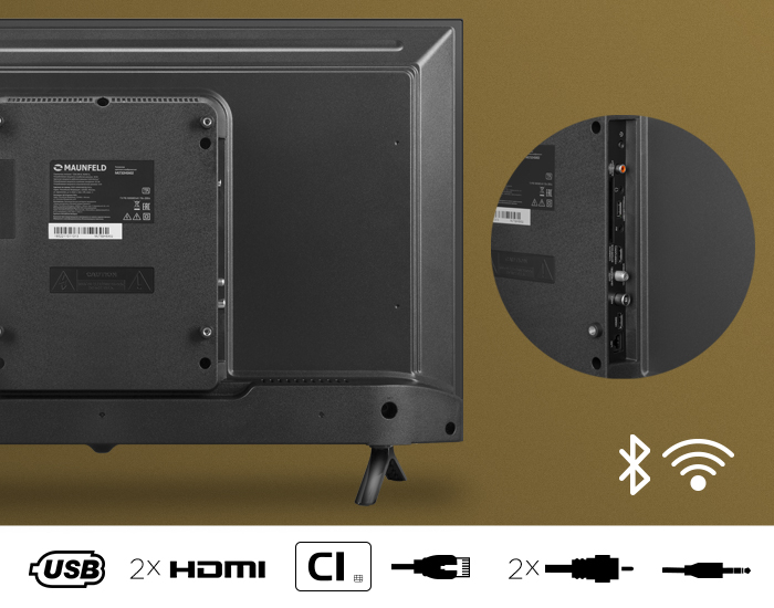 LED-телевизор Maunfeld оборудован такими разъемами, как HDMI и USB. За счет этого к устройству удобно подсоединять флеш-накопитель, смартфон, ноутбук, игровую консоль или внешний жесткий диск. Телевизор воспроизводит все популярные графические файлы - JPG, BMP,PNG, что позволит вам воспроизводить ваши фотографии через экран телевизора.
