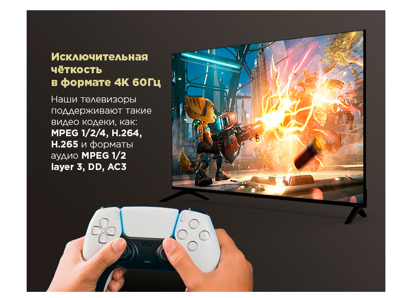 Ultra-HD вмещает в себя разрешение 3840 x 2160 пикселей. Это в 4 раза больше, чем HD, и в 20 раз больше, чем SD. Соотношение сторон — также 16:9. Высокая четкость и реалистичность картинки!