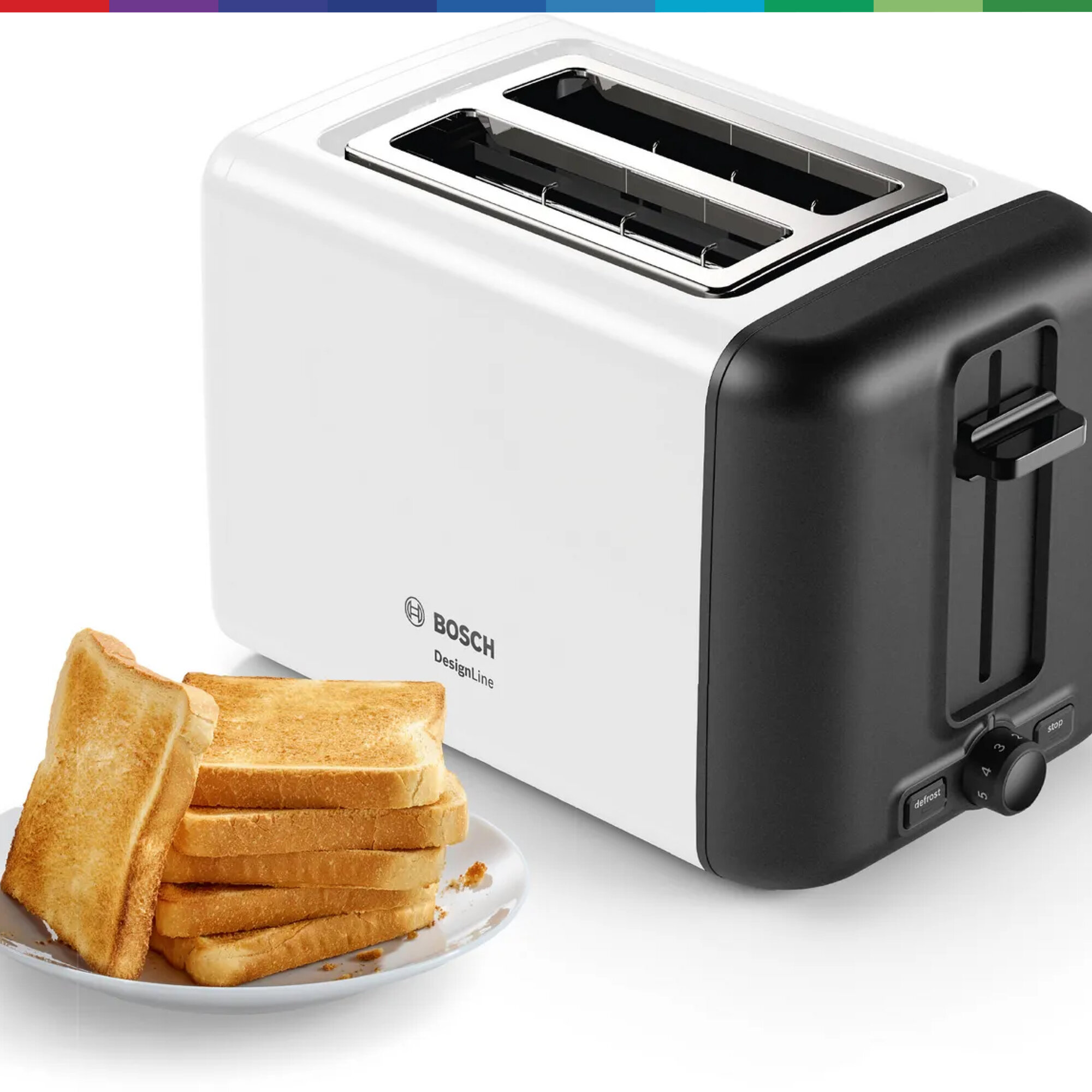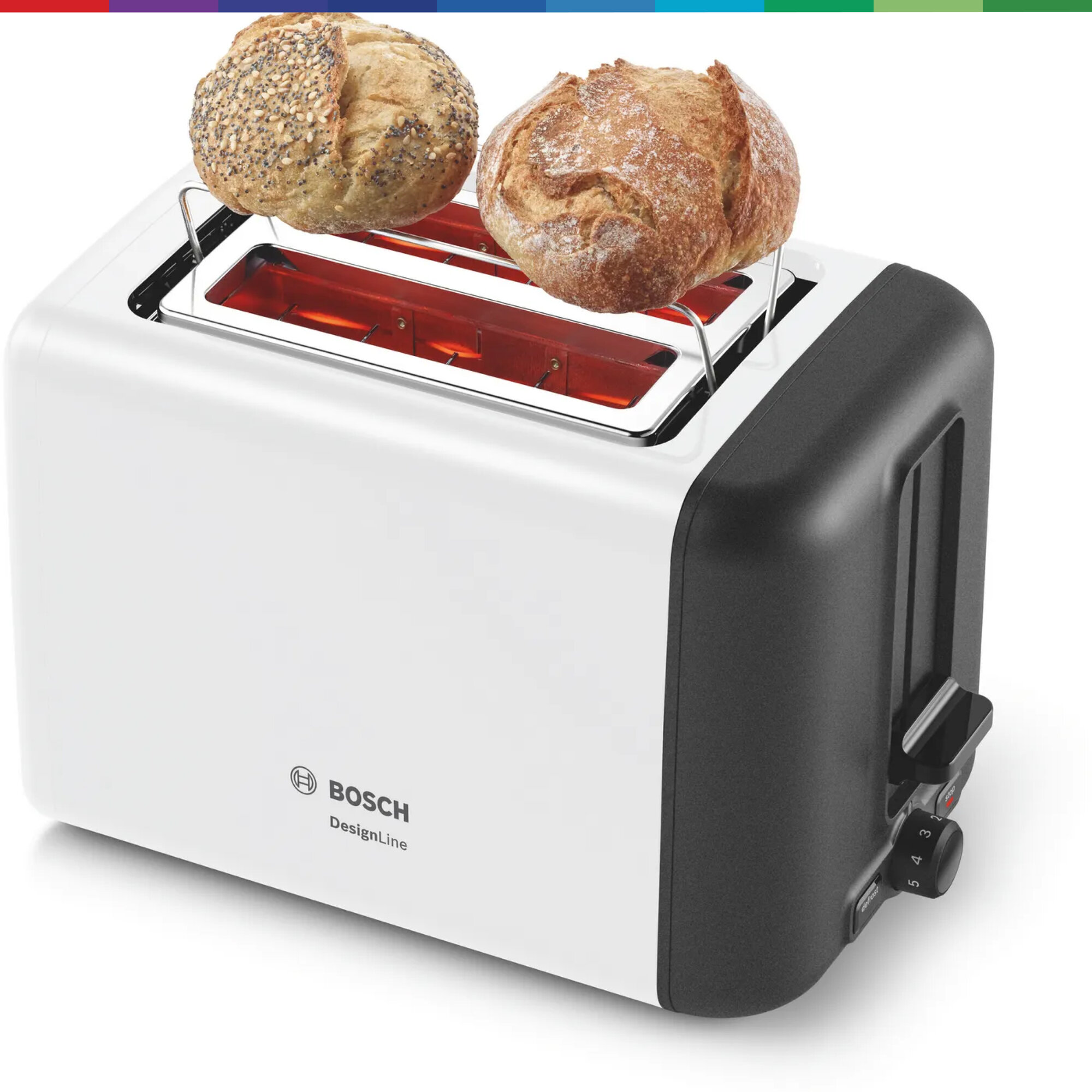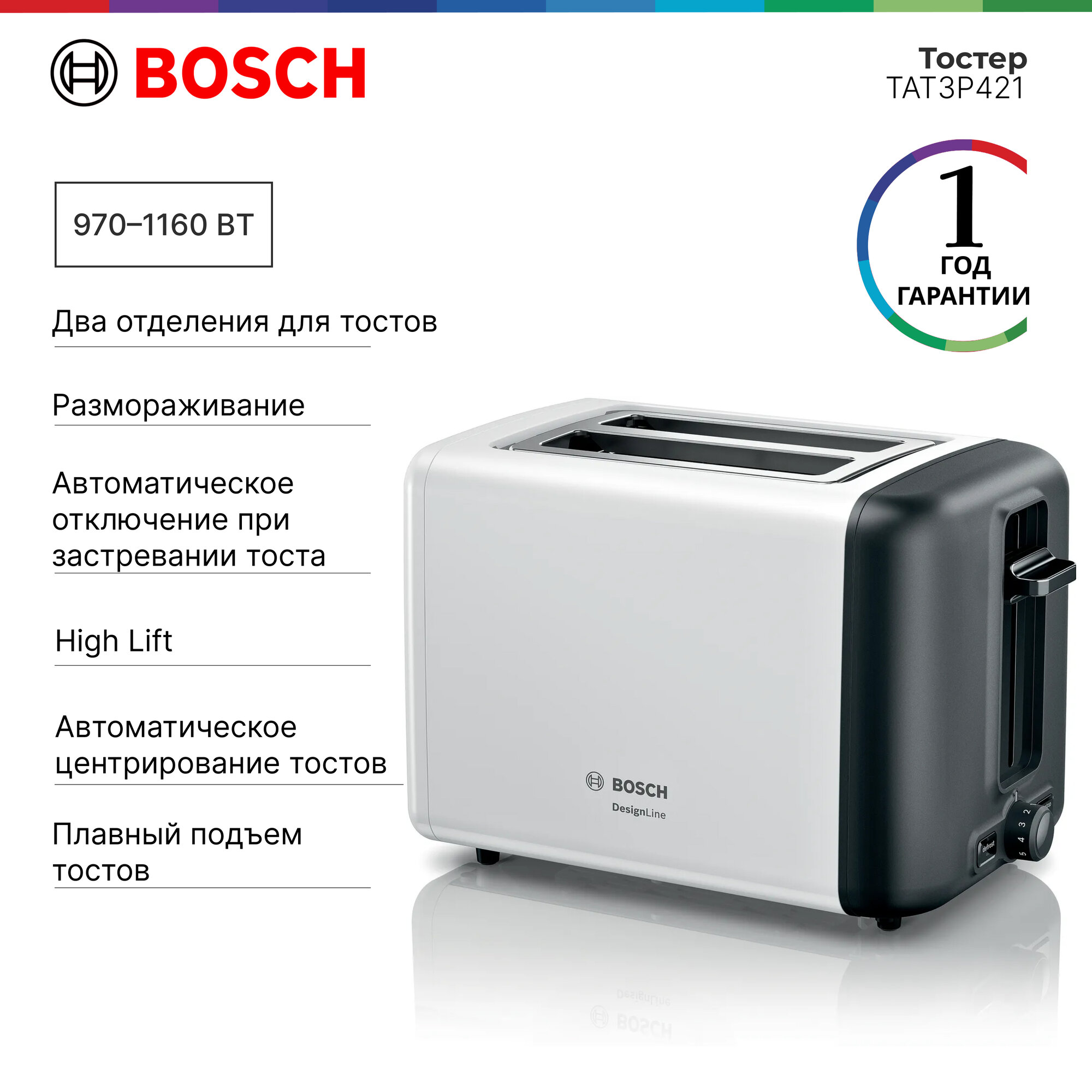Страна производства: Китай. Товар новый в заводской упаковке. Тостер Bosch Tat3P421 оснащен автоматическим центрированием тостов и системой High Lift, которая позволяет легко вытащить даже небольшие кусочки хлеба без риска обжечься. Идеально подойдет для легких перекусов или завтраков. Способен не только обжаривать, но и размораживать. Для большего удобства тостер снабжен поддоном для крошек и автоматическим отключением через некоторый промежуток времени. Есть подставка для подогрева булочек. А нейтральный дизайн тостера Bosch Tat3P421 позволяет разместить его практически в любом современном интерьере. Информация с сайта производителя. Характеристики: EAN: 4242005246854 Тип: тостер Мощность: 970 Вт Количество тостов: 2 Количество отделений (слотов): 2 Тип управления: механическое Регулировка степени обжаривания: да Автоцентрирование тостов: да Кнопка отмены: да Плавная регулировка температуры: да Функция размораживания: да Автоматическое поднятие тостов: да Решётка для подогрева булочек: да Съёмный поддон для крошек: да Материал корпуса: металл Цвет: белый Высота: 19.5 см Ширина: 30 см Глубина: 17 см Вес нетто: 1.7 кг Гарантия: 12 мес Одностороннее обжаривание: нет Страна-производитель: Китай