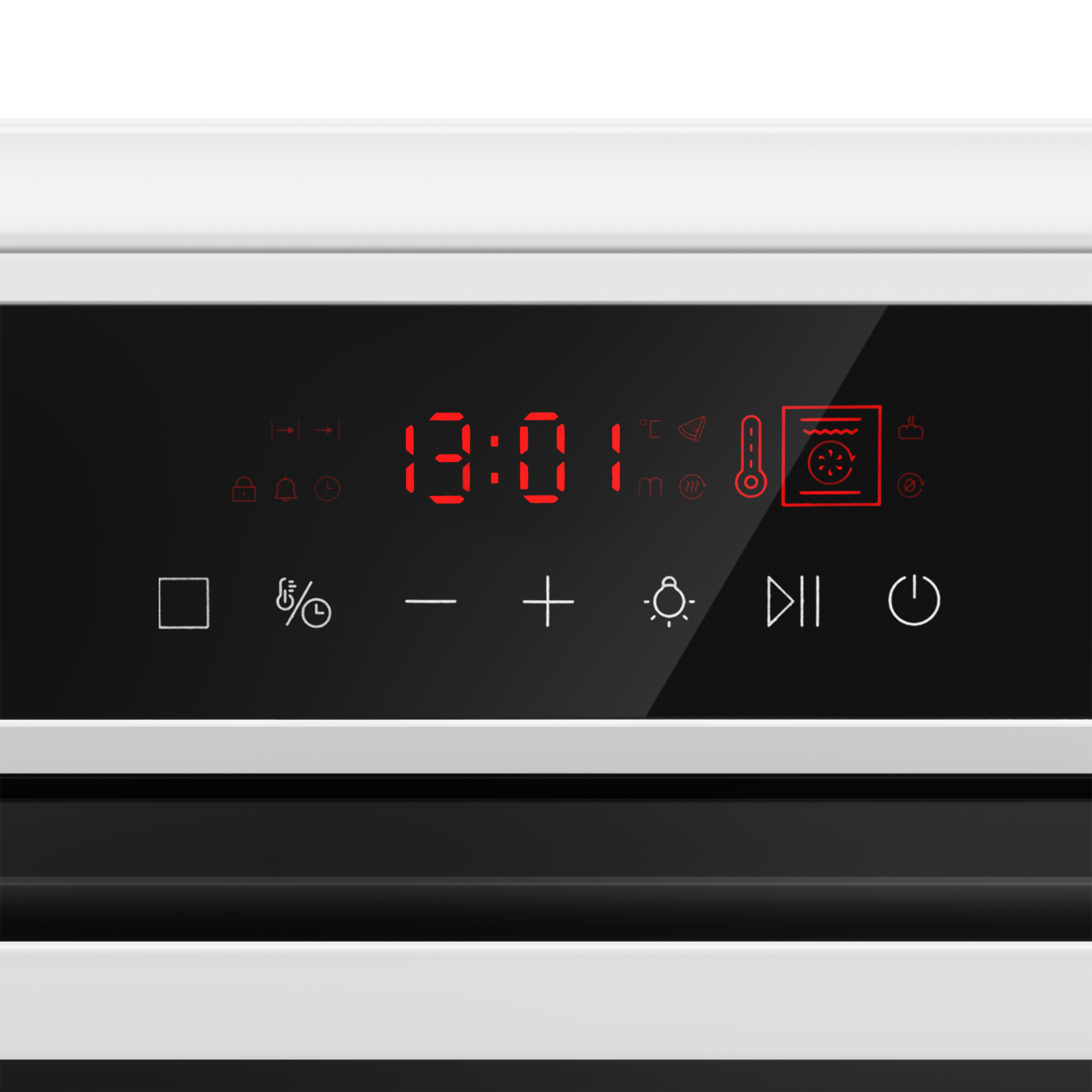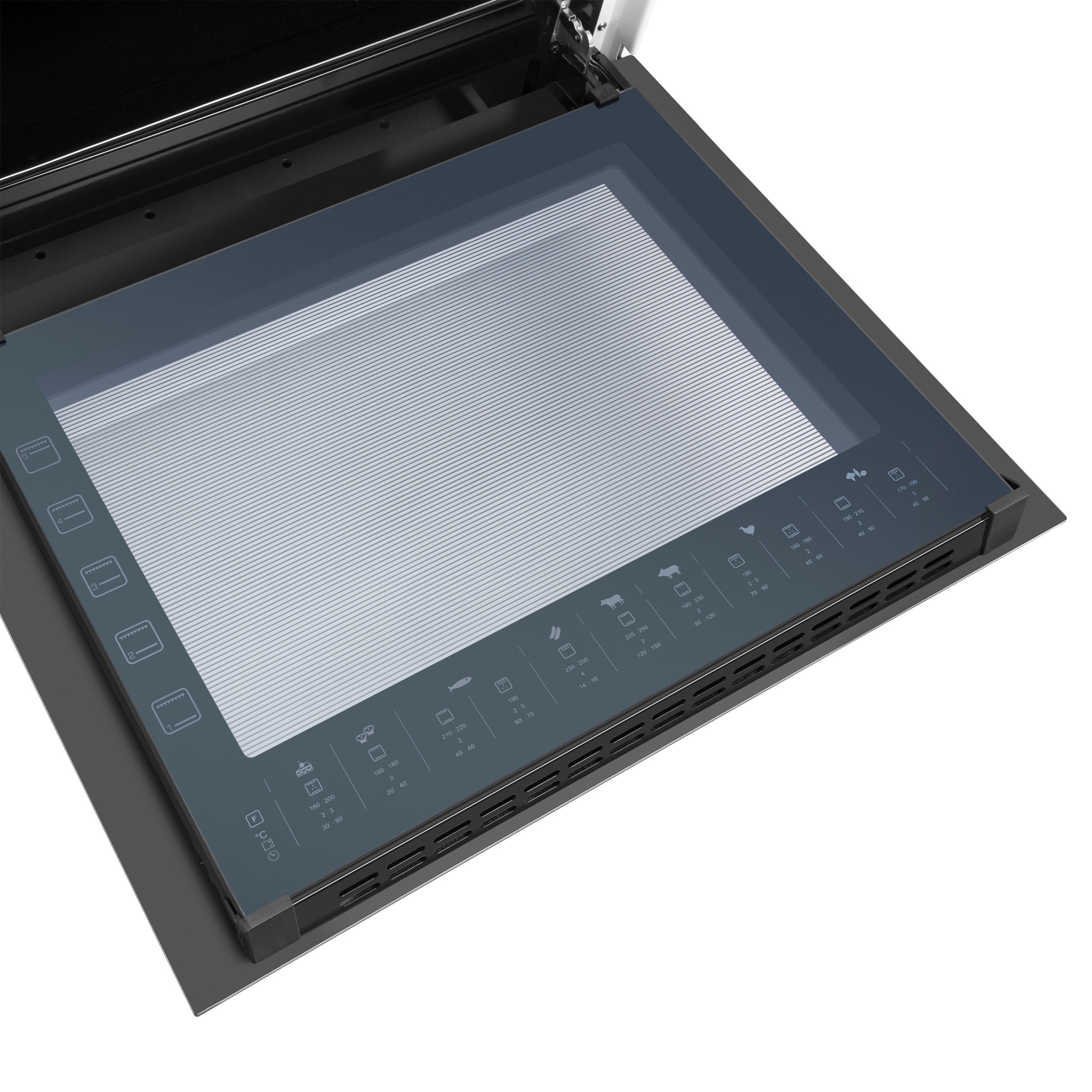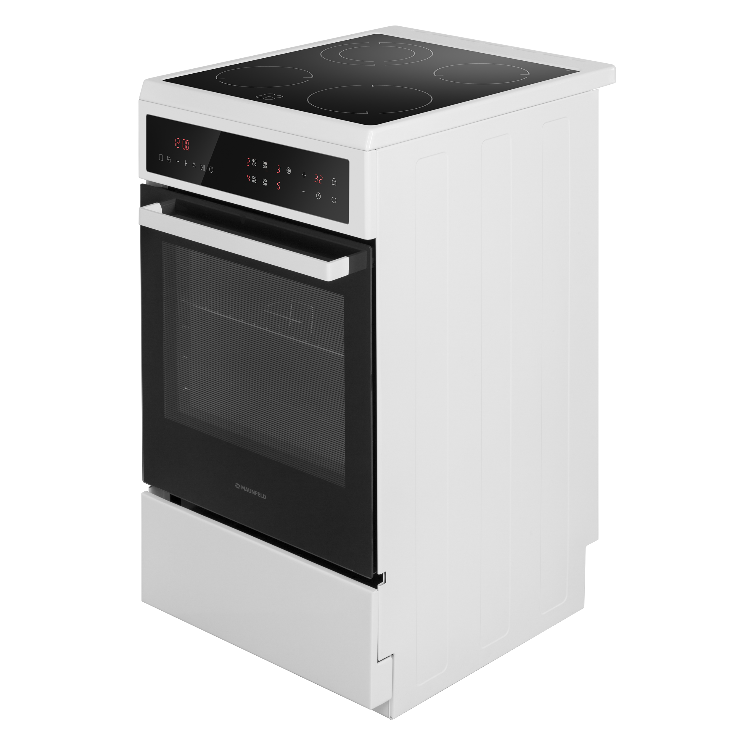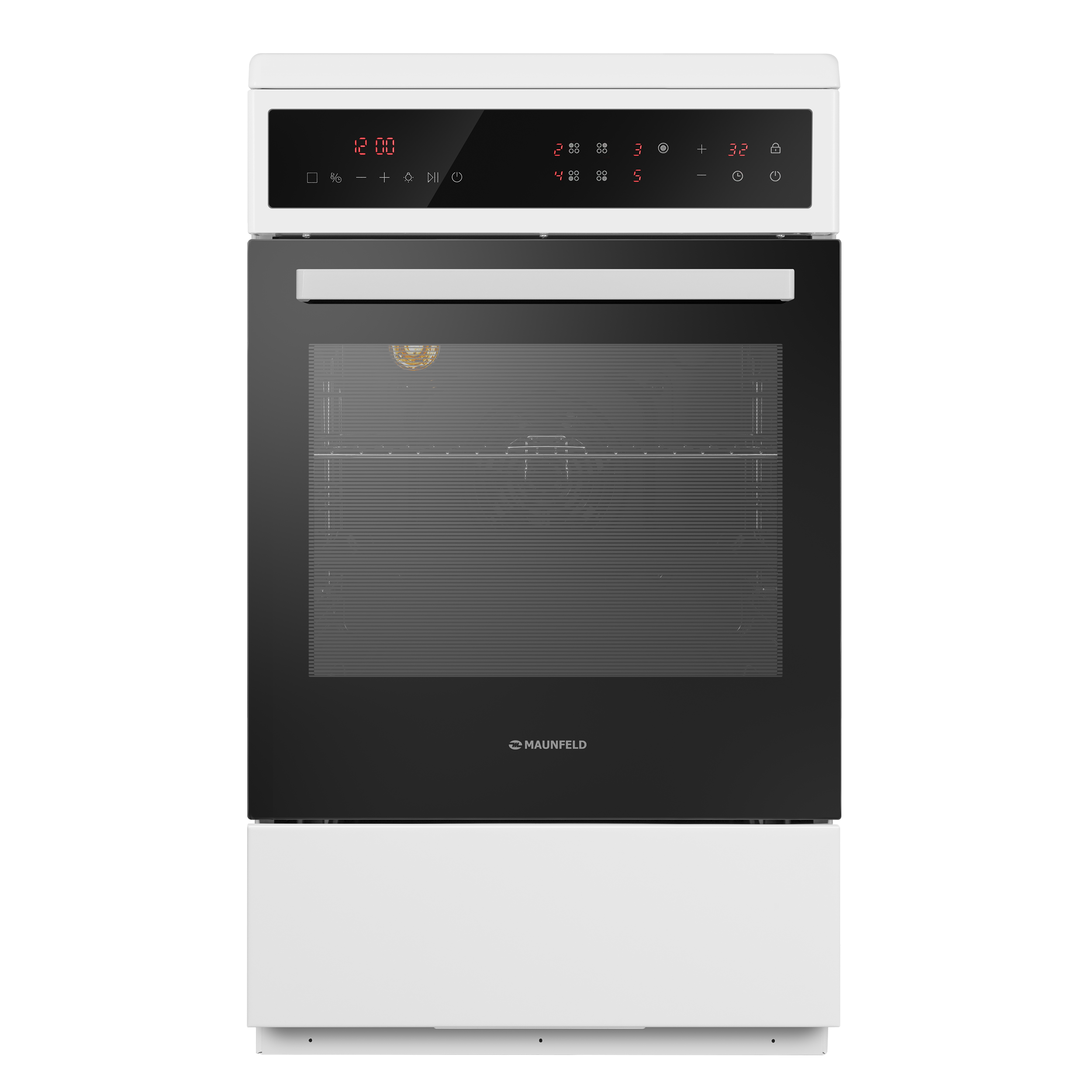 Полноразмерная электрическая плита с сенсорным управлением, варочная поверхность - стеклокерамическая. Техническое оснащение также на уровне - конфорки рабочего стола и духовой шкаф управляются сенсорами, в комплектацию входит многофункциональный таймер. Духовой шкаф оснащен конвекцией и грилем. Благодаря яркому внутреннему освещению виден весь объем духовки, нет необходимости открывать дверцу для контроля готовности блюда. Комфортная в эксплуатации, для удобства ухода за плитой, направляющие для противней - съемные и легко чистятся. Предусмотрен и ящик для хранения кухонной посуды. Модель по праву заслуживает место на Вашей кухне.