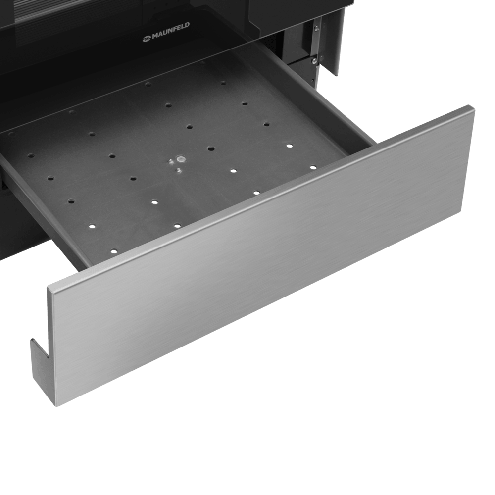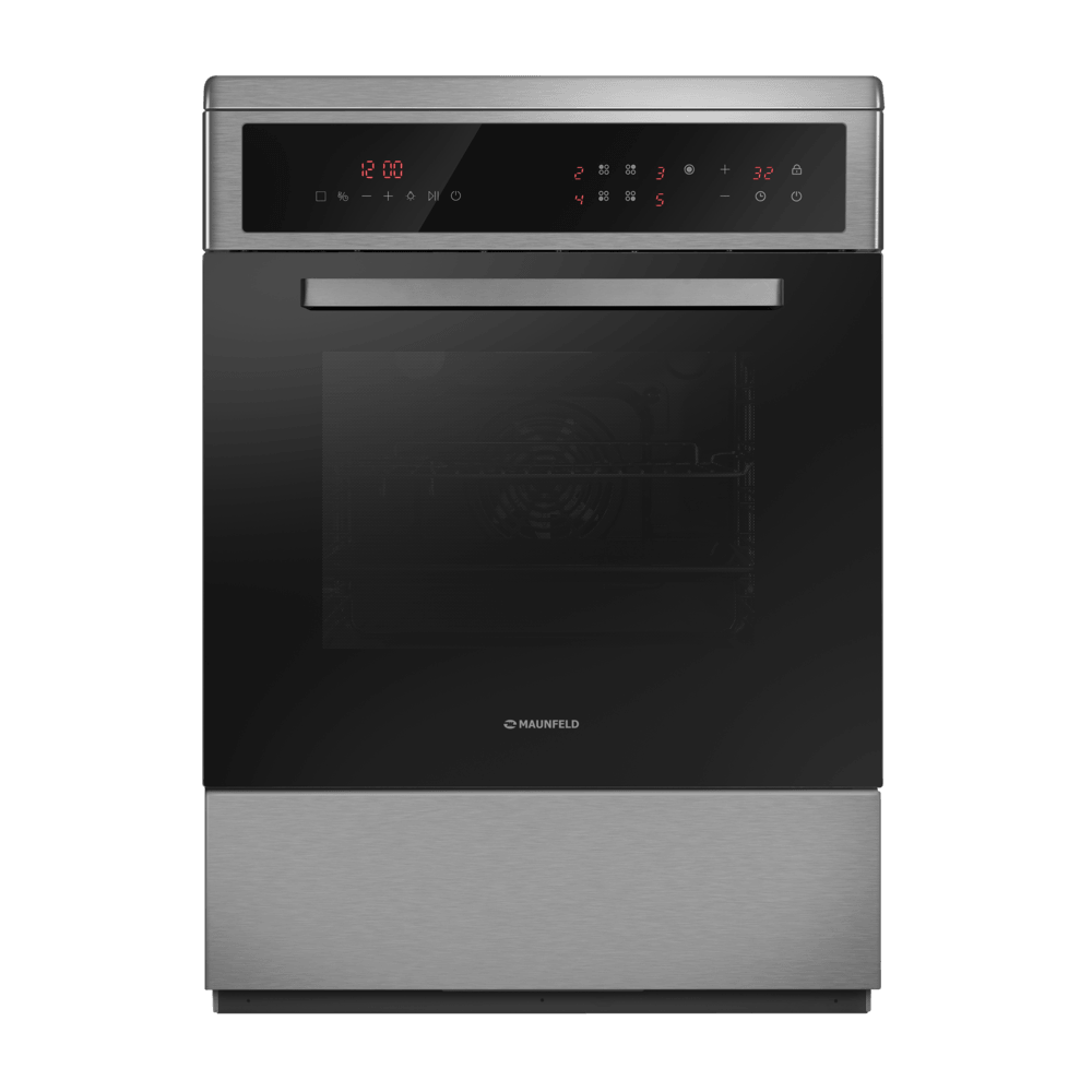 Полноразмерная электрическая плита с сенсорным управлением, варочная поверхность - стеклокерамическая. Техническое оснащение также на уровне - конфорки рабочего стола и духовой шкаф управляются сенсорами, в комплектацию входит многофункциональный таймер. Духовой шкаф оснащен конвекцией и грилем. Благодаря яркому внутреннему освещению виден весь объем духовки, нет необходимости открывать дверцу для контроля готовности блюда. Комфортная в эксплуатации, для удобства ухода за плитой, направляющие для противней - съемные и легко чистятся. Предусмотрен и ящик для хранения кухонной посуды. Модель по праву заслуживает место на Вашей кухне.