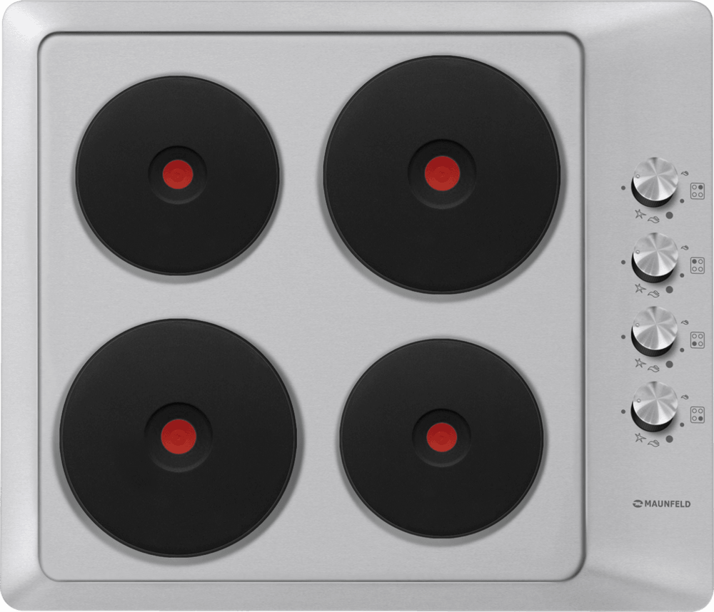 Классическая встраиваемая варочная панель шириной 60 см, выполненная из нержавеющей стали. Варочная поверхность имеет бортик по всему периметру плиты и вокруг каждой конфорки. Благодаря этому, выкипевшая жидкость не попадает ни на горячую конфорку, ни на столешницу.