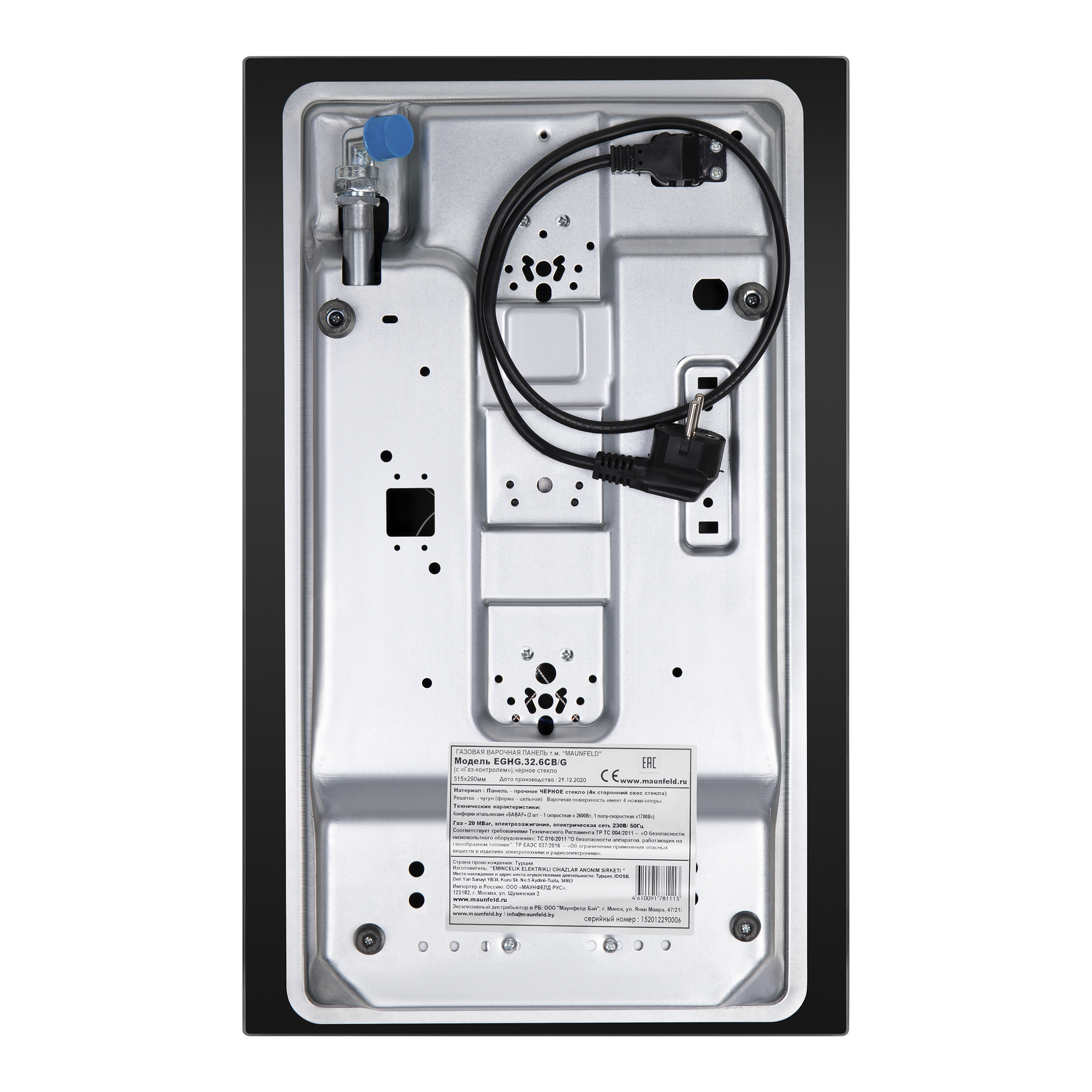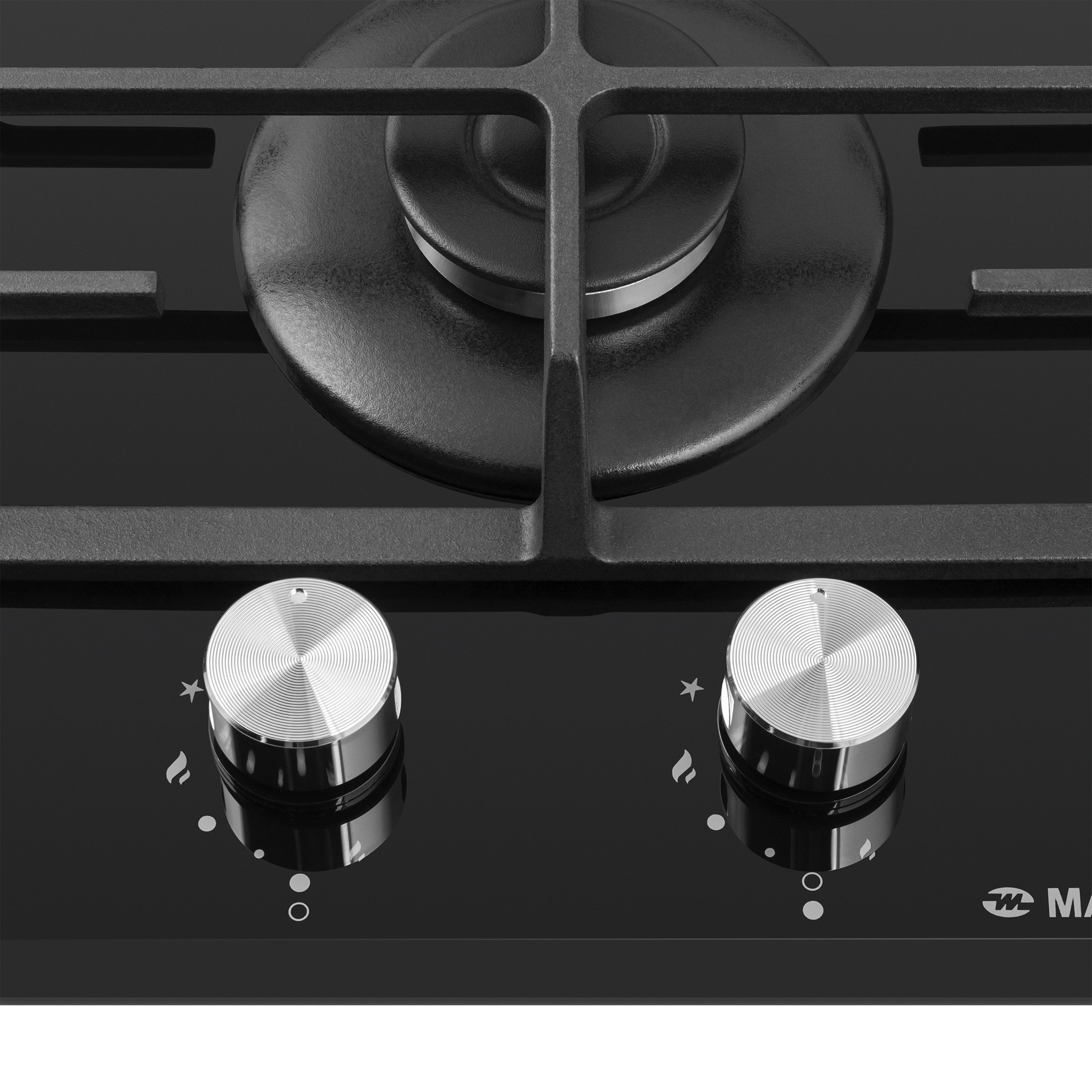 Панель выполнена из закаленного стекла черного цвета. Две стандартные конфорки мощностью 1700 Вт и 2600 Вт. с высококачественными итальянскими горелками «Sabaf».