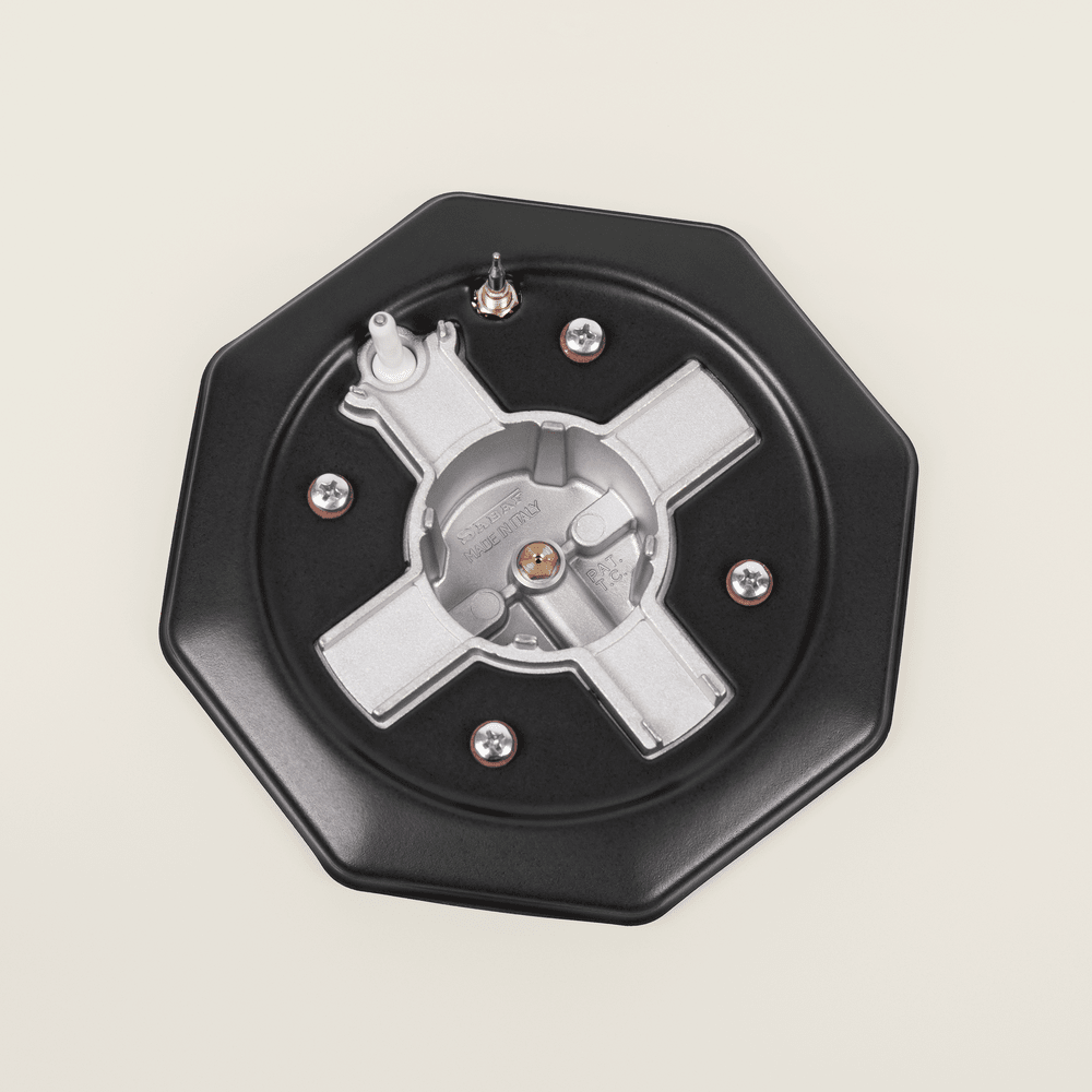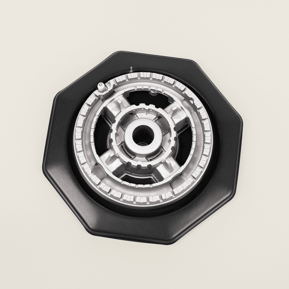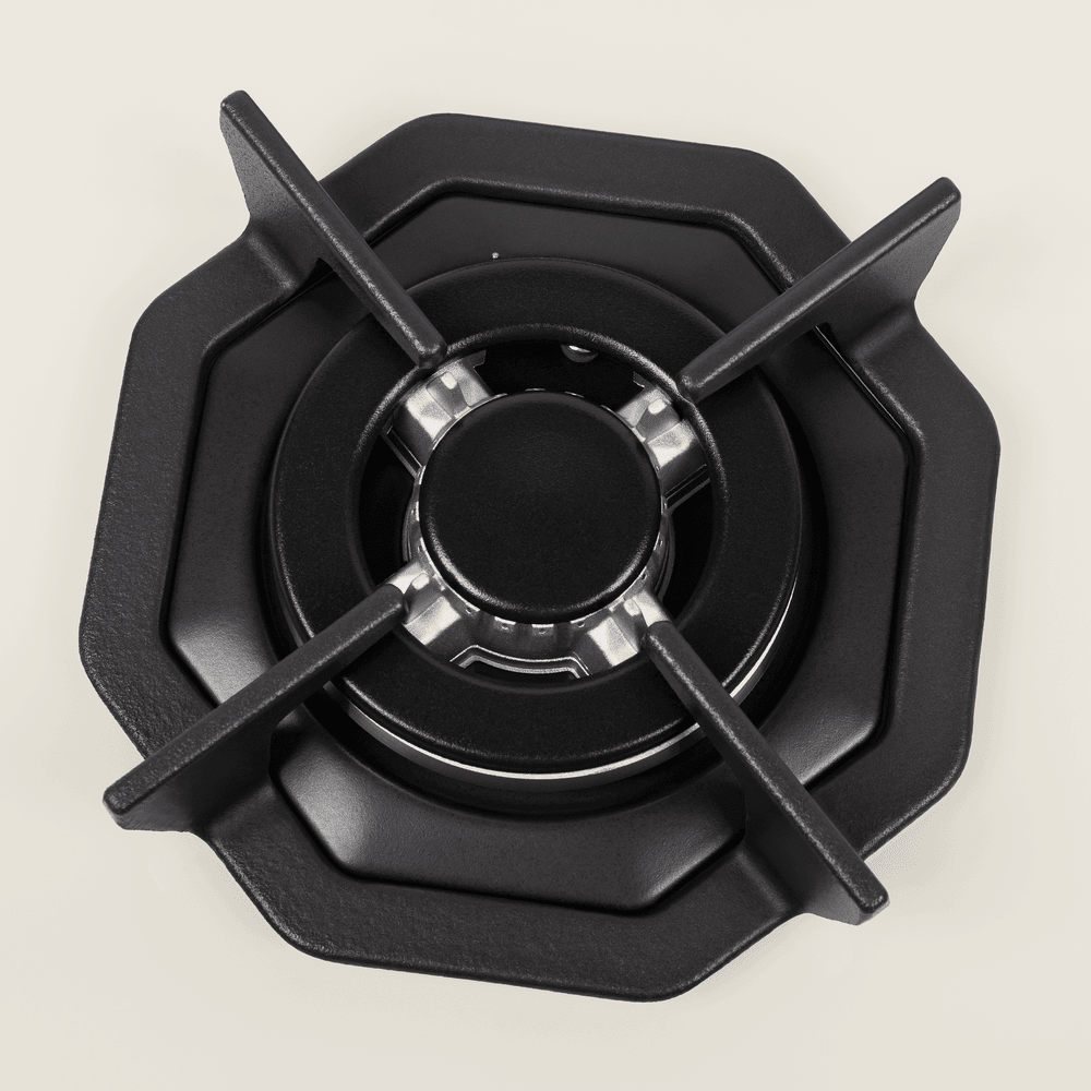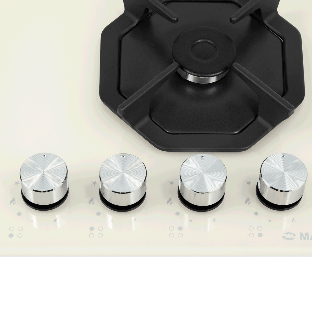 Восьмиугольные чугунные подставки – это запатентованное изобретение MAUNFELD, прочные и долговечные. Сами конфорки спроектированы таким образом, что огонь не перегревает ни чугунные решетки, ни ручки управления.